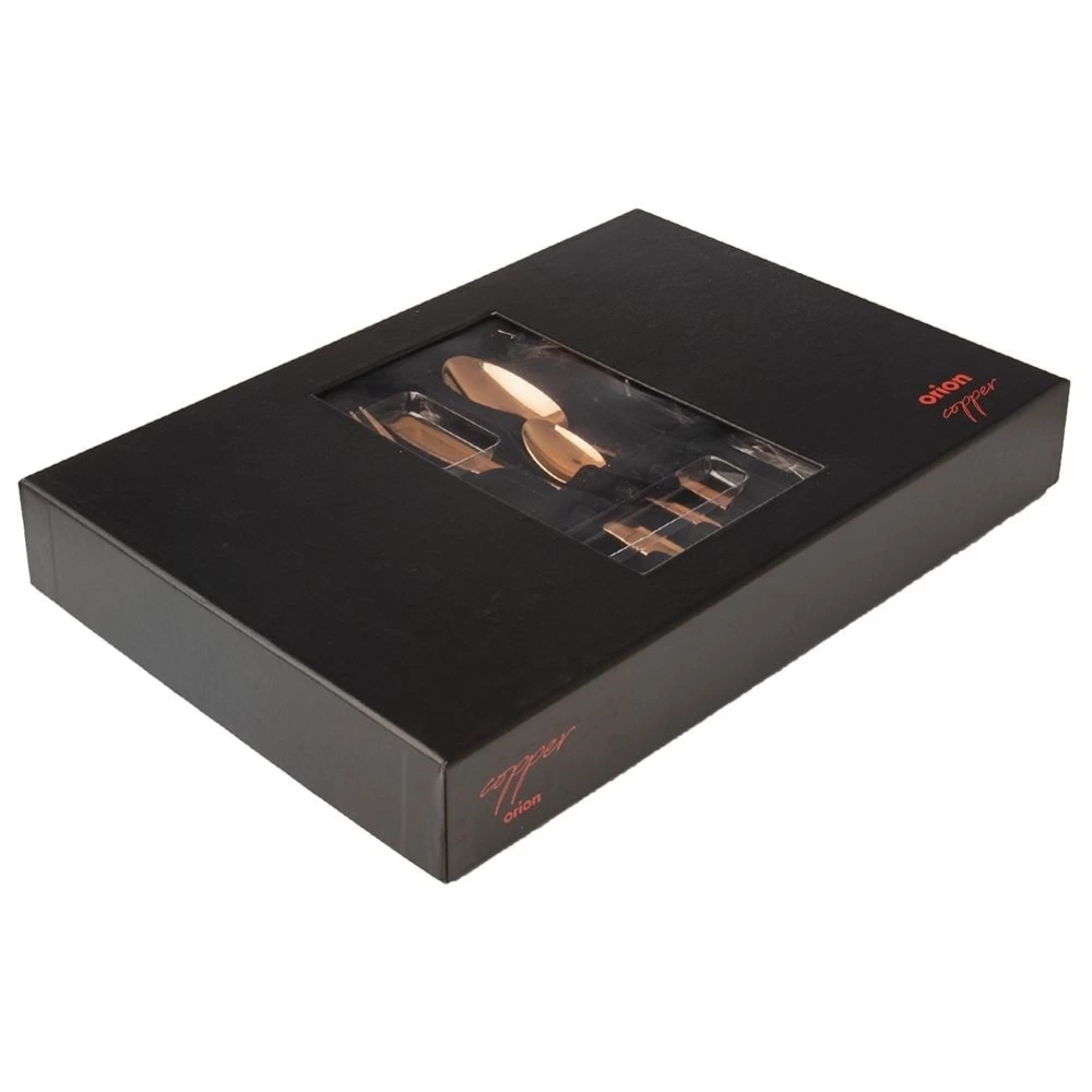 Luksusowy zestaw sztućców dla 6 osób składający się z 24 elementów. Sztućce niezwykle elegancko prezentują się na stole. Utrzymane w modnej kolorystyce. Będą pięknie prezentować się zarówno z zastawą klasyczną, jak i nowoczesną. Sprawdzą się na co dzień, jak również na specjalne okazje, uroczyste obiady czy przyjęcia. Sztućce można myć w zmywarce do naczyń, ale dla utrzymania pięknego wyglądu nie zalecamy. Oryginalny produkt czeskiej marki Orion. Wyprodukowano zgodnie z europejskimi standardami.