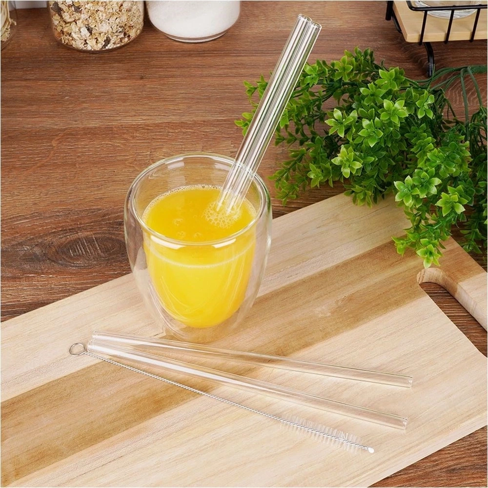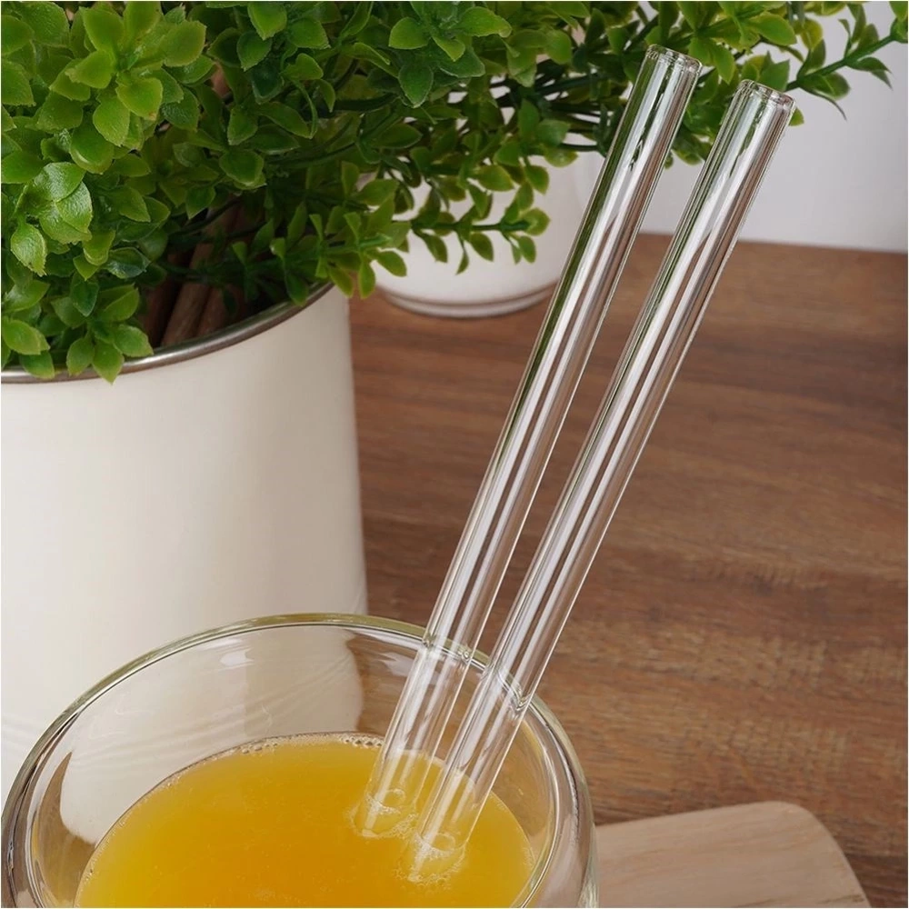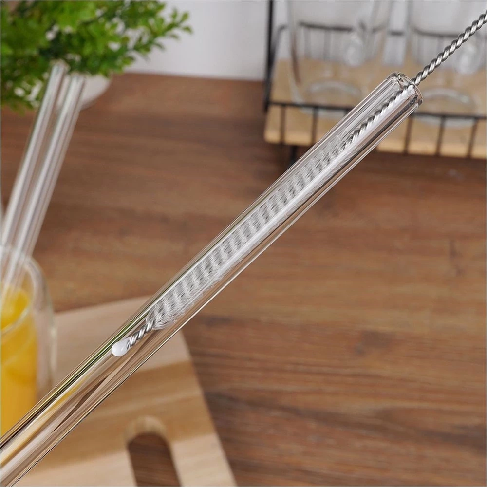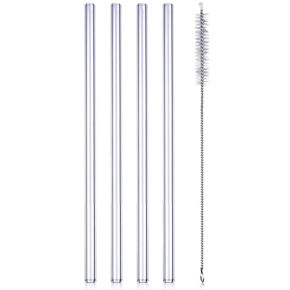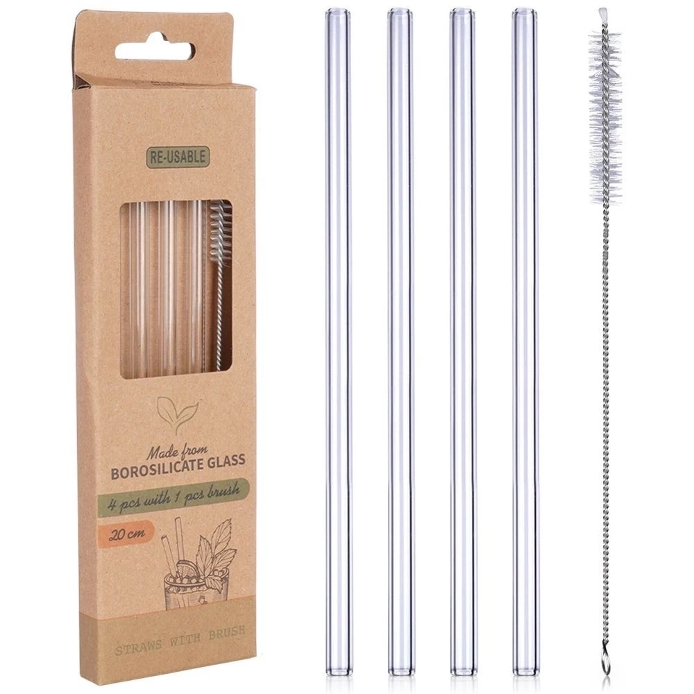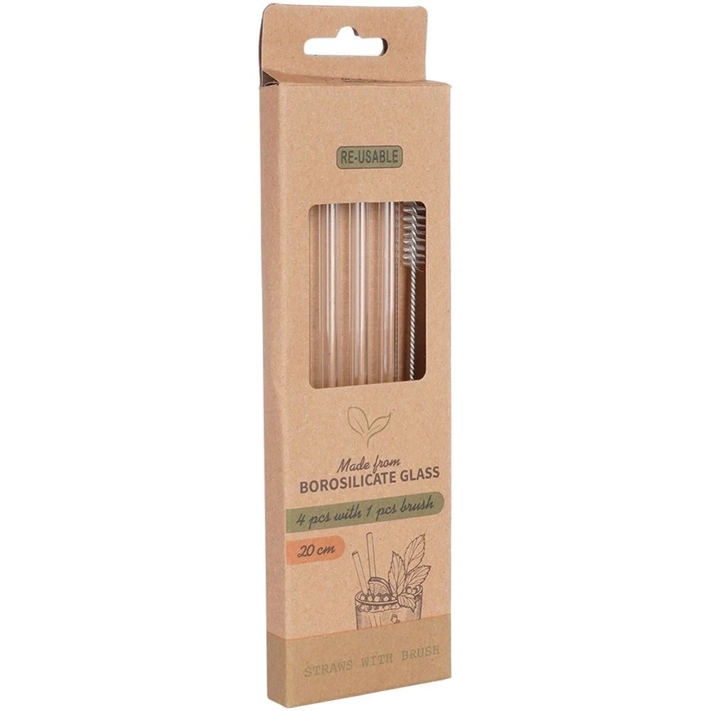 - Zestaw czterech słomek do napojów wraz z czyścikiem. Słomki są wielokrotnego użytku, wykonane z wysokiej jakości szkła borokrzemowego.
