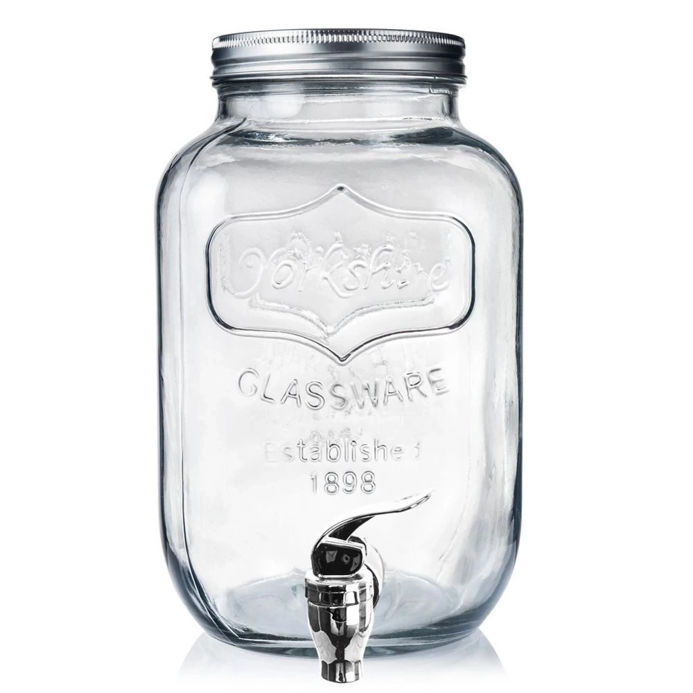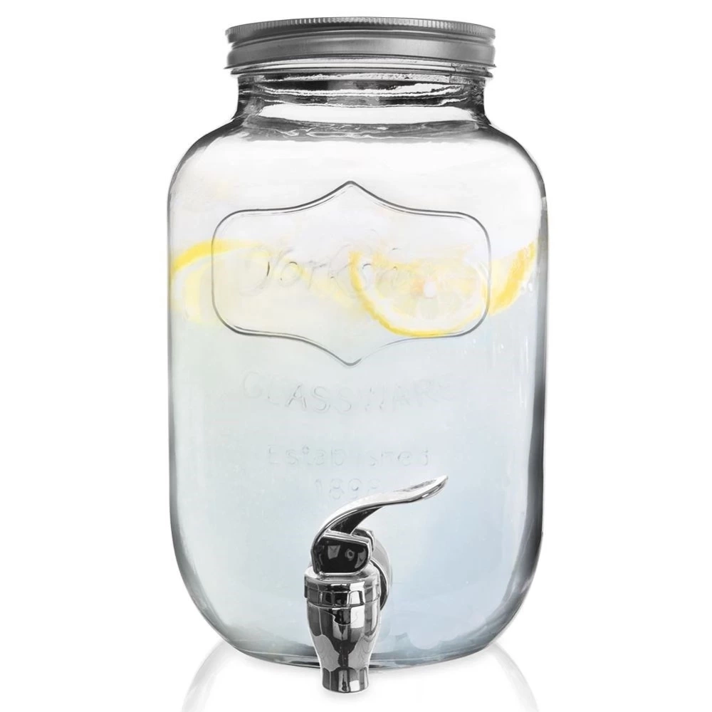 - IDEALNY DO NAPOJÓW - Dystrybutor do napojów z kranikiem o pojemności 4 litrów. Idealny do serwowania lemoniady w gorące dni, ponczu lub soku podczas imprezy. Wymiary słoju 15 x 25,5 cm.