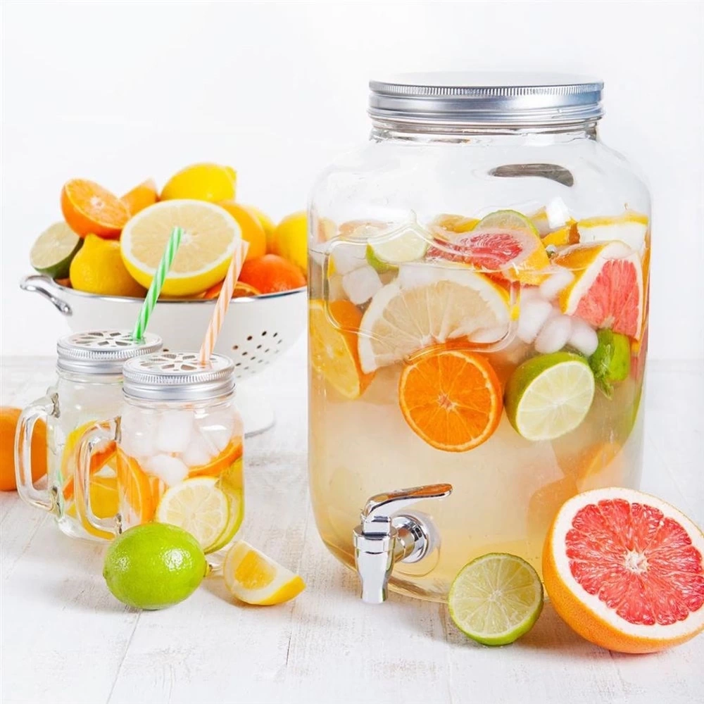 - Słoik do napojów z kranikiem, idealny do serwowania lemoniady w gorące dni lub ponczu na imprezy. Nadaje się do napojów z kawałkami owoców lub lodem.