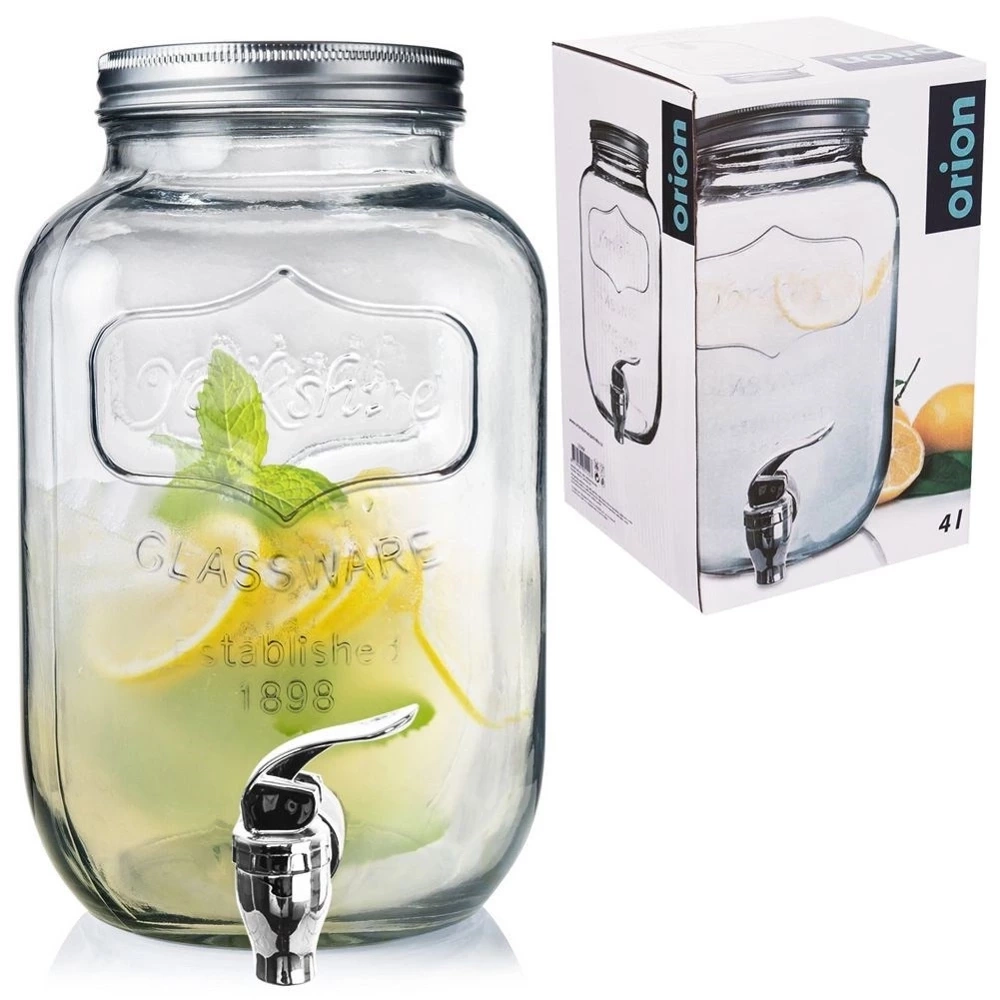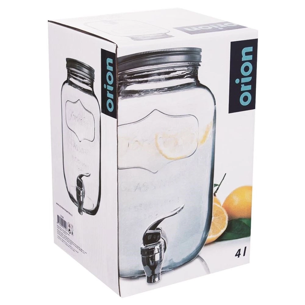 Szklany dystrybutor z kranikiem idealny do serwowania wody, lemoniady, soku, herbaty mrożonej, wody smakowej, ale również ponczu. Dzięki kranikowi w łatwy sposób zaserwujemy ulubione napoje w sposób efektowny. Słój wykorzystamy zarówno w ogrodzie, jak i podczas spotkań rodzinnych. Dzięki zamykanej pokrywie żadne owady nie dostaną się do naszego napoju. Wykonany jest z materiałów bezpiecznych dla zdrowia i neutralnych dla żywności. Nie nadaje się do napojów gorących. Oryginalny produkt czeskiej marki Orion. Wyprodukowano zgodnie z europejskimi standardami.