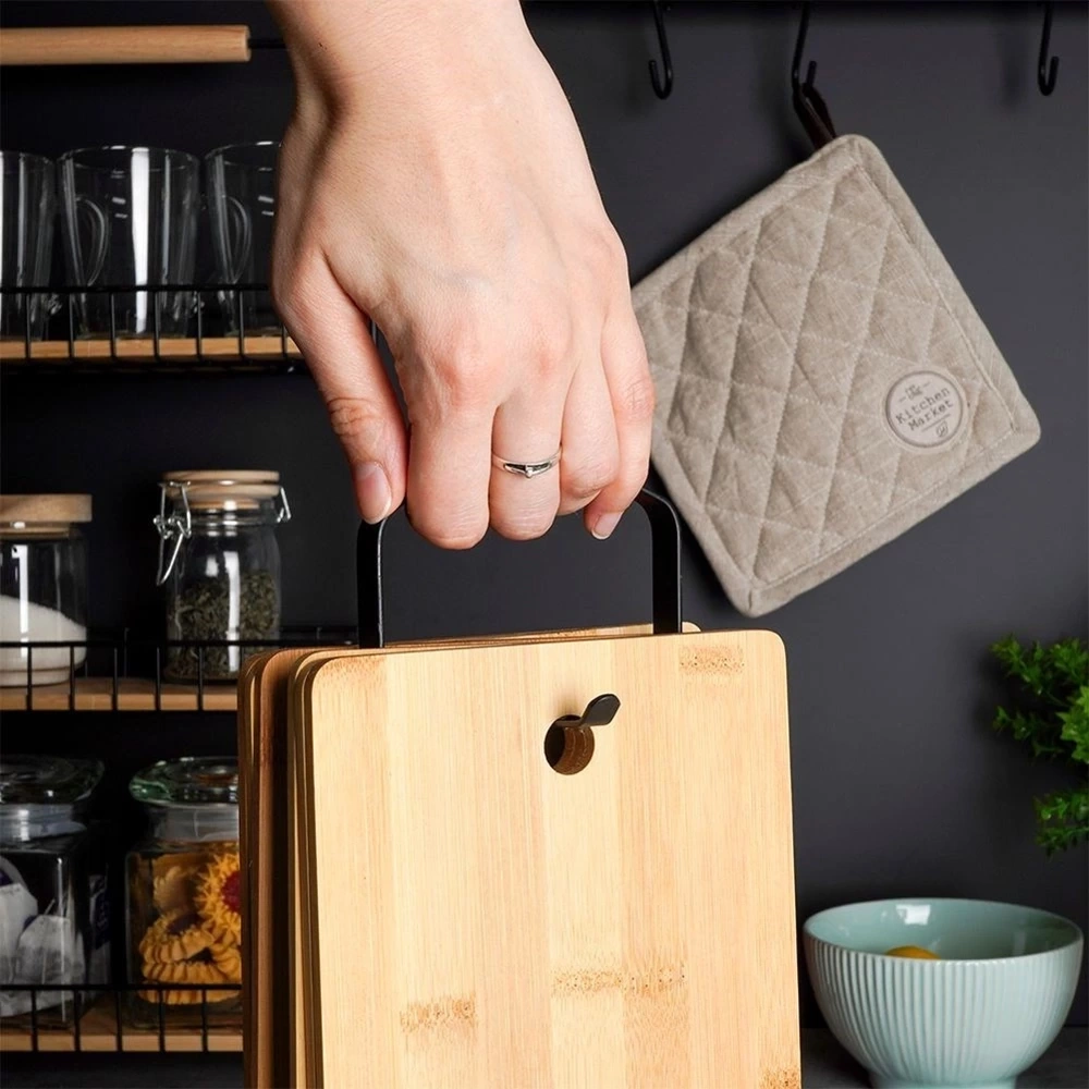 Komplet 6 desek na stojaku. Deski umieszczone są w wygodnym i stabilnym stojaku, który pozwoli na odpowiednie przechowywanie desek. Taka forma przechowywania deski pozwoli na odpowiednią organizację przestrzeni w kuchni a deski będą zawsze na swoim miejscu. Zestaw desek jest też świetnym pomysłem na prezent. Wyprodukowano zgodnie z europejskimi standardami.