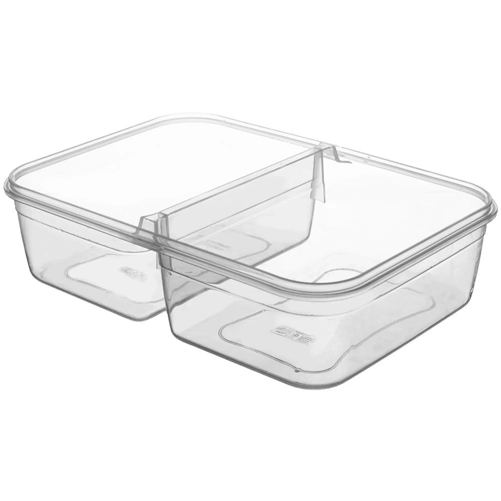 - PRAKTYCZNY - Dzielony pojemnik kuchenny z pokrywką, sprawdzi się do przechowywania i przenoszenia żywności. Pojemnik ma pojemność 2 litrów i wymiary 25,5 x 18 x 7 cm. Jest podzielony na dwie części.