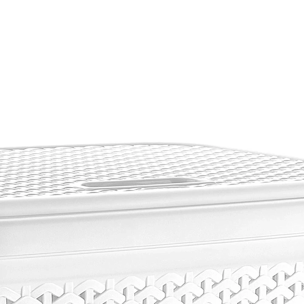 Pojemny kosz na pranie posiadający otwieraną pokrywę. Kosz prezentuje się bardzo efektownie dzięki wykonaniu z tworzywa, które imituje rattan. Biały kolor i klasyczny wzór sprawią, że kosz będzie pięknie prezentował się w każdym wnętrzu. Kosz na pranie jest niezbędnym w każdej łazience. Z jego pomocą utrzymamy porządek i będziemy mieć stałe miejsce do przechowywania odzieży i bielizny do prania. Oryginalny produkt czeskiej marki Orion. Wyprodukowano zgodnie z europejskimi standardami.