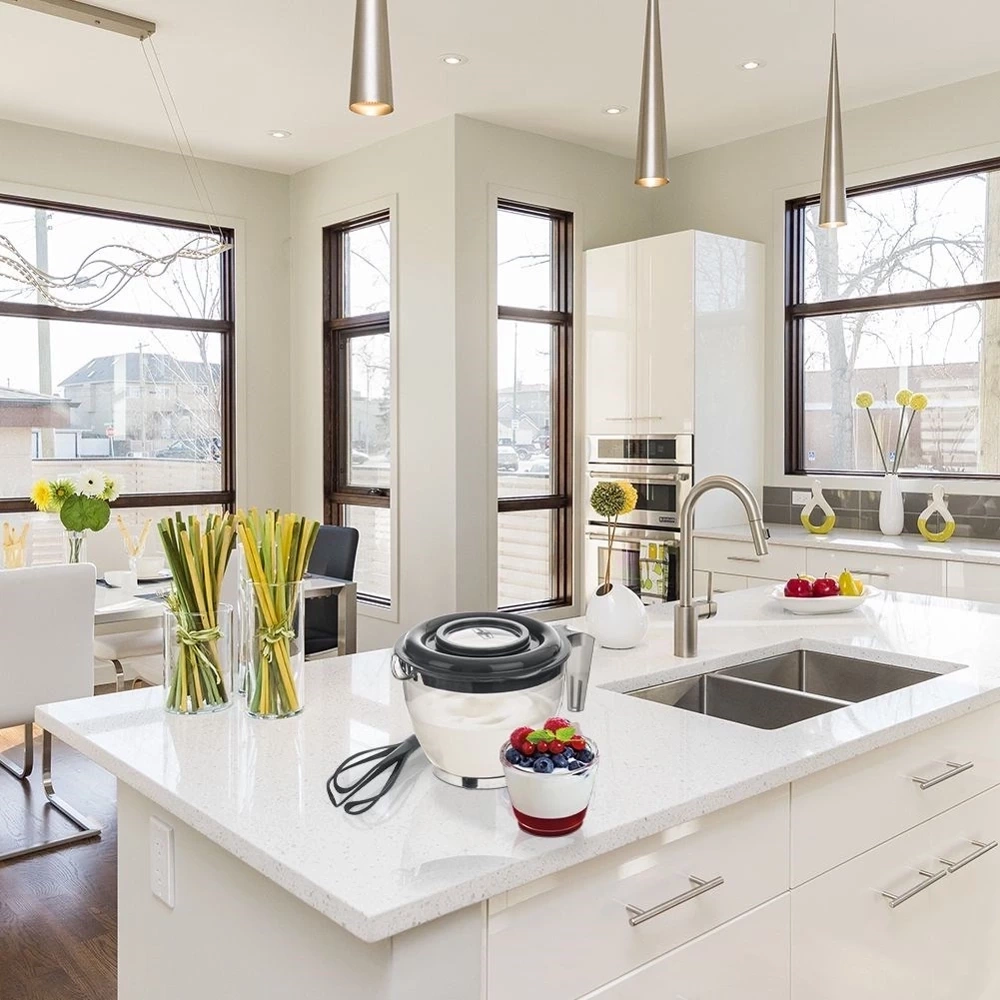 - WYGODNA - Miska posiada wygodny uchwyt, który ułatwi pracę. Za pomocą rączki możemy przytrzymać miskę podczas miksowania, co zapewni jej stabilność. Miska wyposażona w dwu-częściową pokrywkę, zapobiegającą pryskaniu. Dodatkowo miska posiada cztery antypoślizgowe nóżki, które zapewnią stabilność podczas użytkowania oraz dziubek, który zapewni wygodne wylewanie zawartości miski.