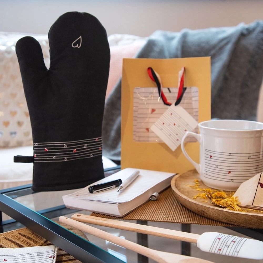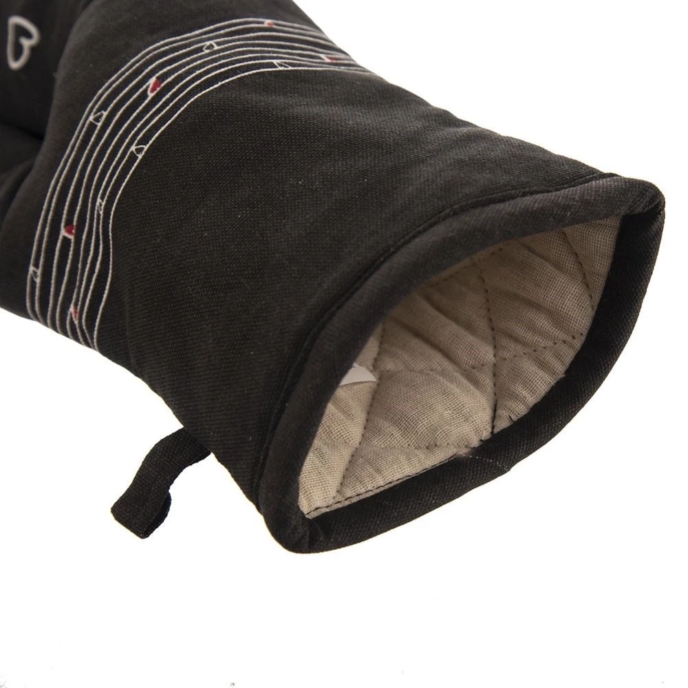- BAWEŁNIANA - Wykonana z wysokiej jakości bawełny w czarnym kolorze z delikatnym wzorem serduszek. Utrzymana w modnym stylu będzie pięknie prezentowała się w każdym wnętrzu, stanowiąc element dekoracyjny kuchni.