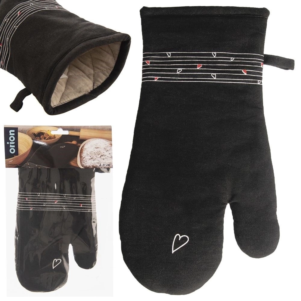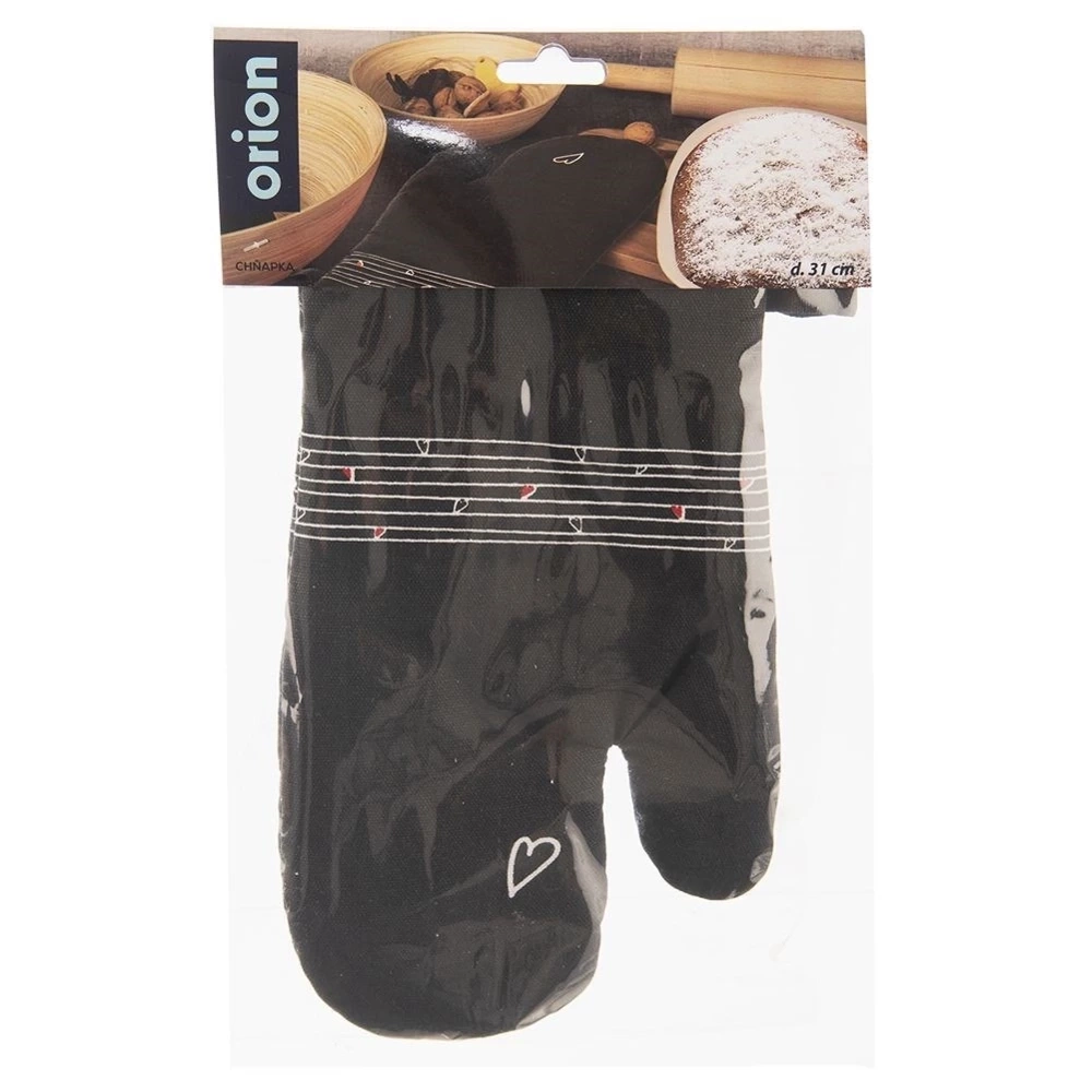 Rękawica kuchenna wykonana z bawełny. Wyposażona w pętelkę do zawieszenia oraz magnes. Wygodna w użytkowaniu, odpowiednio przylega do dłoni chroniąc ją podczas gotowania lub pieczenia przed oparzeniami. Z pomocą rękawicy bez problemu przeniesiemy gorące naczynia. Możemy wykorzystać ją również jako podstawkę pod gorący garnek. Oryginalny produkt czeskiej marki Orion. Wyprodukowano zgodnie z europejskimi standardami.