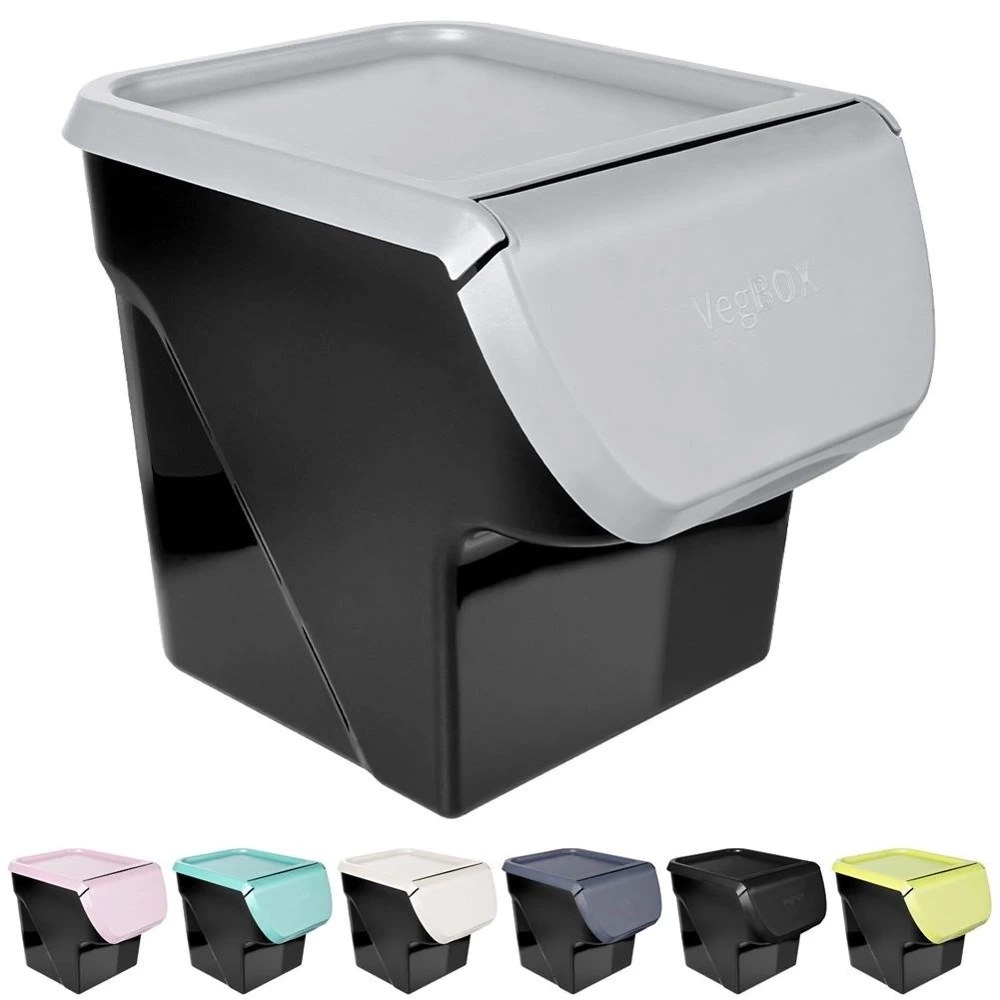 Pojemnik na owoce i warzywa. Wykorzystamy go również do segregacji śmieci lub przechowywania przedmiotów w domu lub garażu. Utrzymany w modnej kolorystyce, lekki i wygodny w użytkowaniu. Zdejmowana pokrywka posiada uchylną klapkę, dzięki czemu w łatwy sposób możemy go uzupełnić oraz wyczyścić. Oryginalny produkt marki Vilde. Wyprodukowano zgodnie z europejskimi standardami.