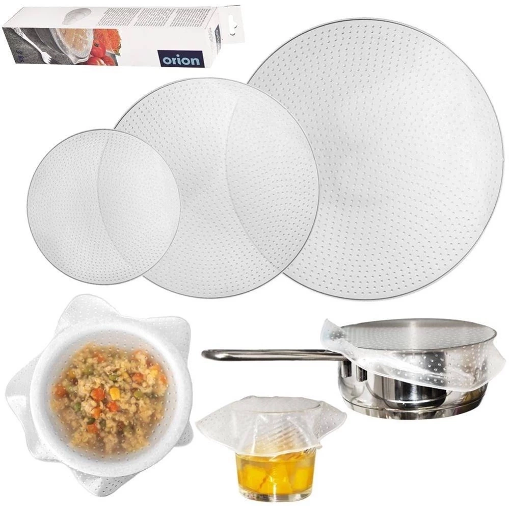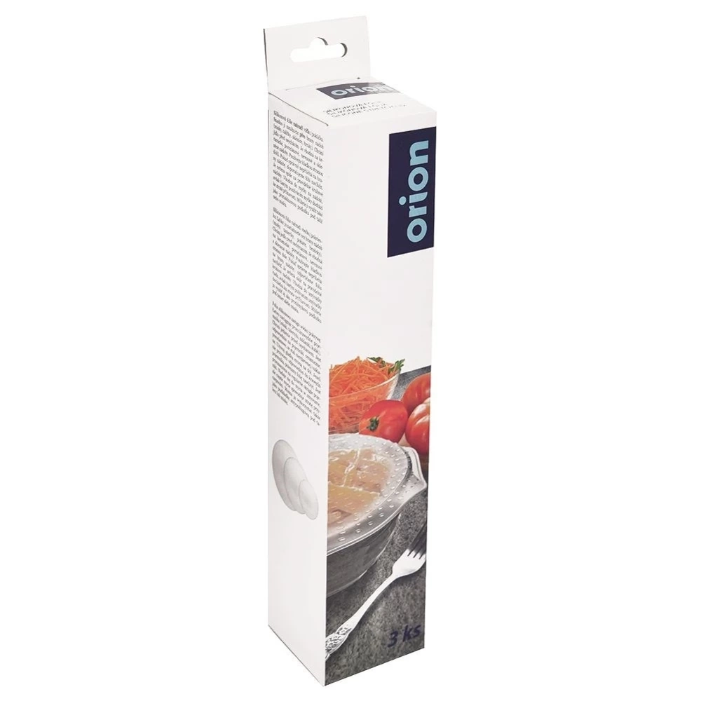 Zestaw trzech uniwersalnych pokrywek o różnej wielkości. Wielkość pokrywek jest na tyle uniwersalna, że pasują do różnego rodzaju naczyń. Silikonowy materiał jest elastyczny, dzięki czemu montaż pokrywki jest bardzo prosty. Z ich pomocą ochronimy przechowywaną żywność przed wyschnięciem oraz zepsuciem. Pokrywki są wielorazowe, więc z powodzeniem zastąpią klasyczną folię aluminiową lub spożywczą. Mogą pełnić rolę podkładek antypoślizgowych. Podkładki przechowamy w łatwy sposób, nie zajmując dużo miejsca - wystarczy je zwinąć. Oryginalny produkt czeskiej marki Orion. Wyprodukowano zgodnie z europejskimi standardami.