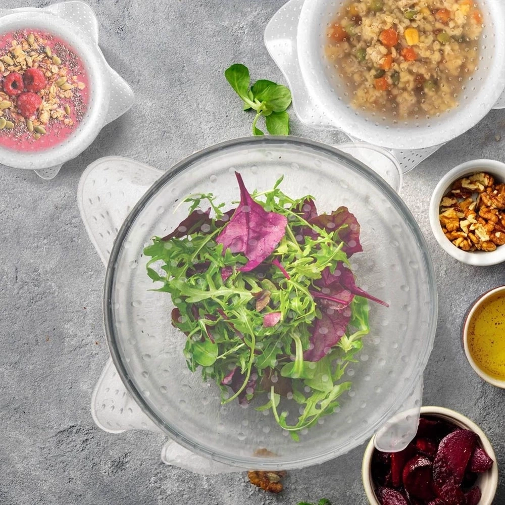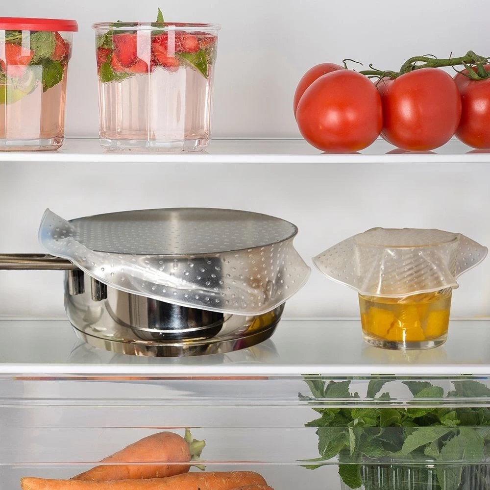 - WIELORAZOWE - Pokrywki na żywność zastąpią folię spożywczą lub aluminiową. Zapobiegną wysuszaniu się oraz psuciu żywności. Możemy stosować je wielokrotnie.