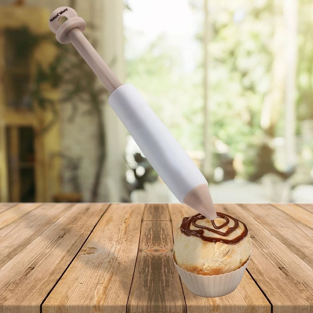 Pisak do dekorowania lukrem. Solidnie wykonany, wygodny w użytkowaniu. Użytkowanie go jest bardzo łatwe, wystarczy napełnić go lukrem, polewą czekoladową i używać tak jak długopisu do pisania. Dzięki precyzyjności w łatwy sposób możemy z jego pomocą stworzyć efektowne napisy, czy dekoracje. Idealny do ozdabiania muffinek, tortów. Oryginalny produkt greckiej marki NAVA z linii z linii akcesoriów kuchennych Misty. Wyprodukowano zgodnie z europejskimi standardami.