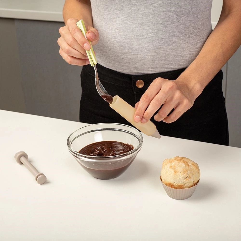 - ŁATWE UŻYTKOWANIE - Pisak napełnimy w łatwy sposób otwierając końcówkę i wlewając lukier, czekoladę, miód lub polewę. Nadaje się do mycia w zmywarce do naczyń.