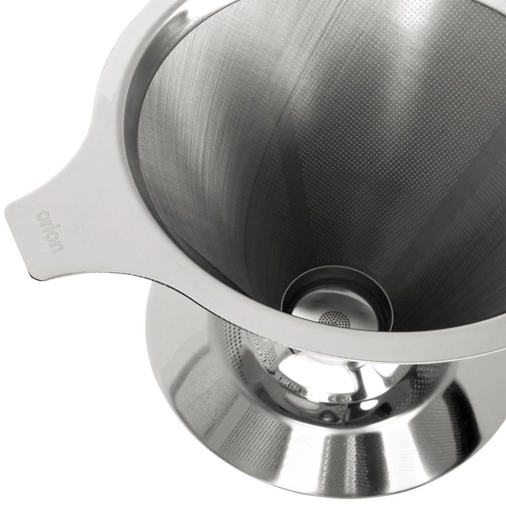 - Filtr do zaparzania kawy w całości wykonany ze stali nierdzewnej. Filtr jest wielokrotnego użytku i świetną alternatywą dla papierowych filtrów.