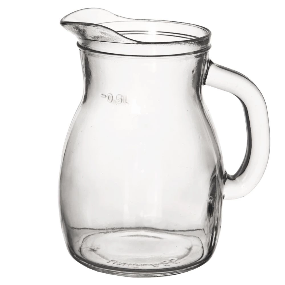 - PRZYDATNY - Dzbanek szklany do napojów, wina, sosów oraz mleka. Dzbanuszek ma pojemność całkowitą 600 ml oraz zaznaczoną pojemność 500 ml. Wysokość dzbanka wynosi 14 cm.