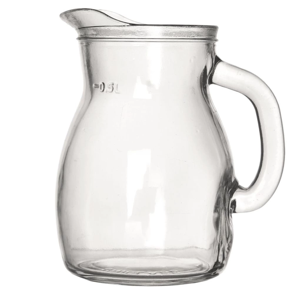 - Szklany dzbanek o uniwersalnym zastosowaniu. Możemy serwować w nim napoje, wino, ale również mleko czy sos. Posiada dzióbek, uchwyt oraz miarkę informującą o 500 ml.