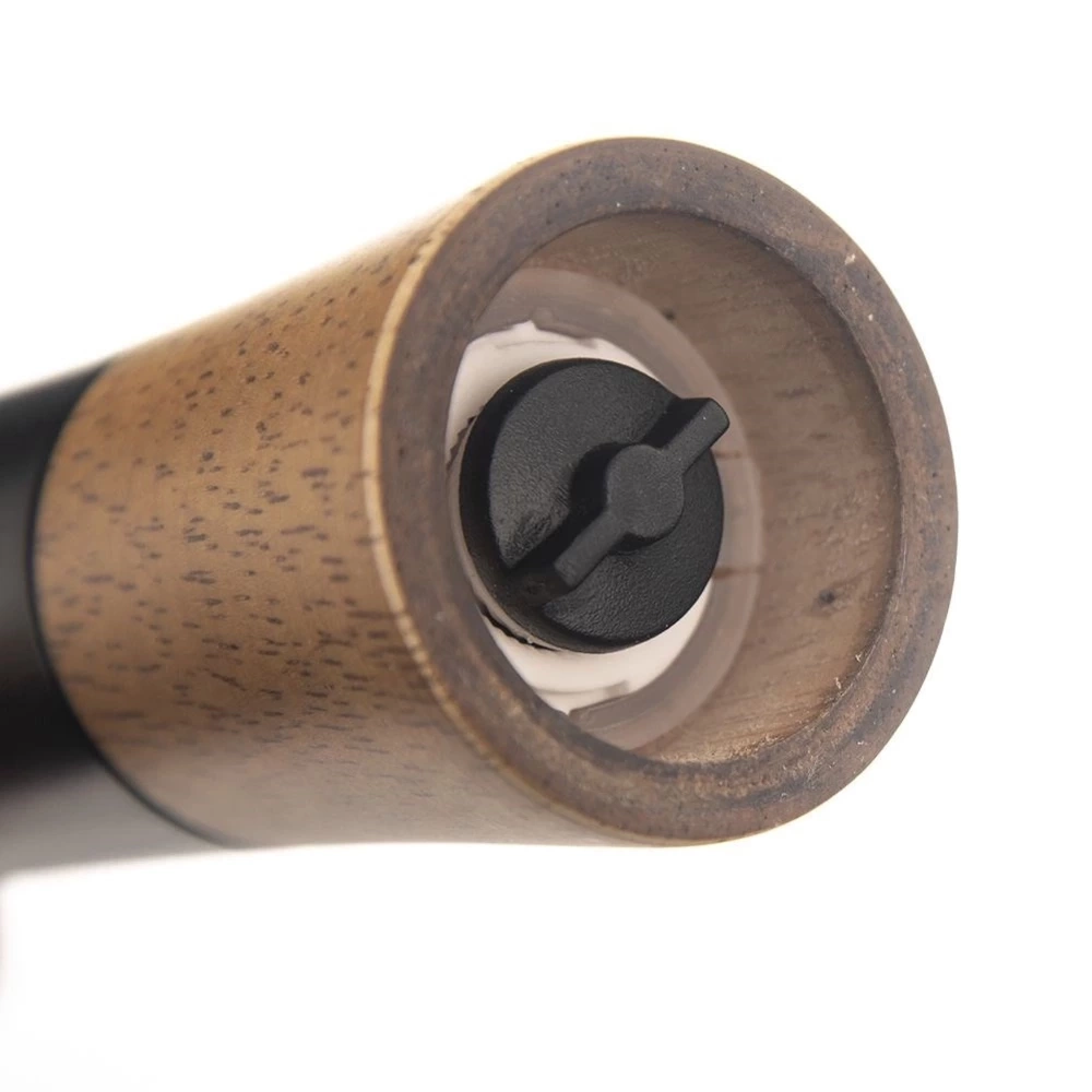 - DREWNIANY - Obudowa młynka wykonana z drewna kauczukowego oraz tworzywa w kolorze czarnym. Ceramiczny mechanizm mielący gwarantuje mielenie nawet najtwardszych ziaren.