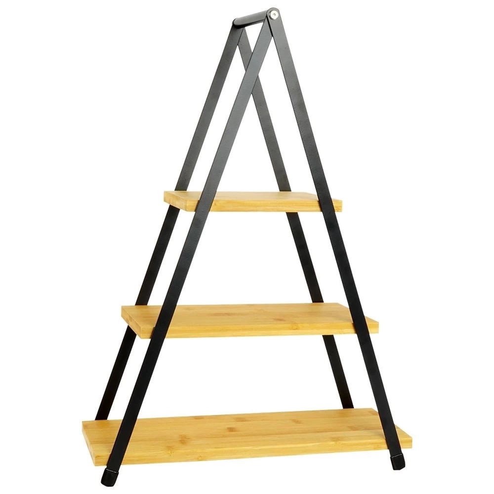 - SOLIDNA - Konstrukcja została wykonana z metalu w czarnym kolorze. Poziomy pater zostały wykonane z drewna bambusowego. Usadowiona na czterech nóżkach, które są antypoślizgowe.