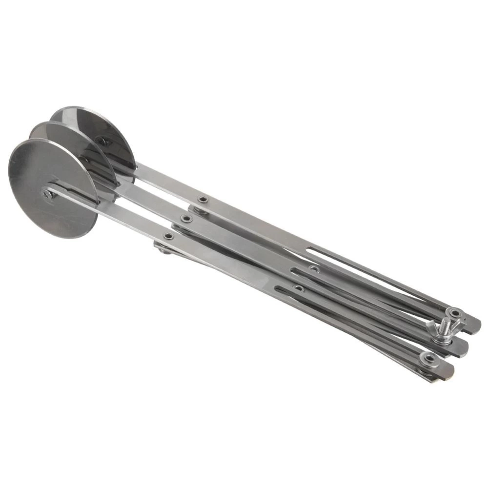 - POTRÓJNY - Znacznik rozstawny do ciasta z trzema jednostronnymi ostrzami. Średnica każdego ostrza wynosi 5,5 cm a długość całkowita wraz z rączką to 24,5 cm.