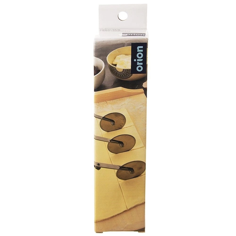 Znacznik rozstawny do ciasta z trzema jednostronnymi ostrzami. Solidnie wykonany, ułatwi precyzyjne krojenie. Sprawdzi się zarówno w użytku domowym jak i w gastronomii, czy cukierni. Idealny do krojenia ciastek, ciast lub ciasta do makaronu. Ostre ostrza i długi uchwyt zapewnią wygodne użytkowanie. Oryginalny produkt czeskiej marki Orion. Wyprodukowano zgodnie z europejskimi standardami.