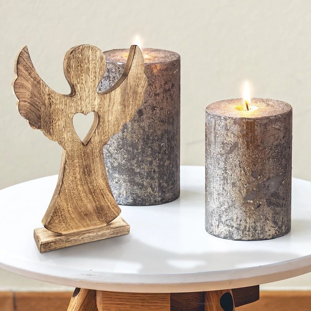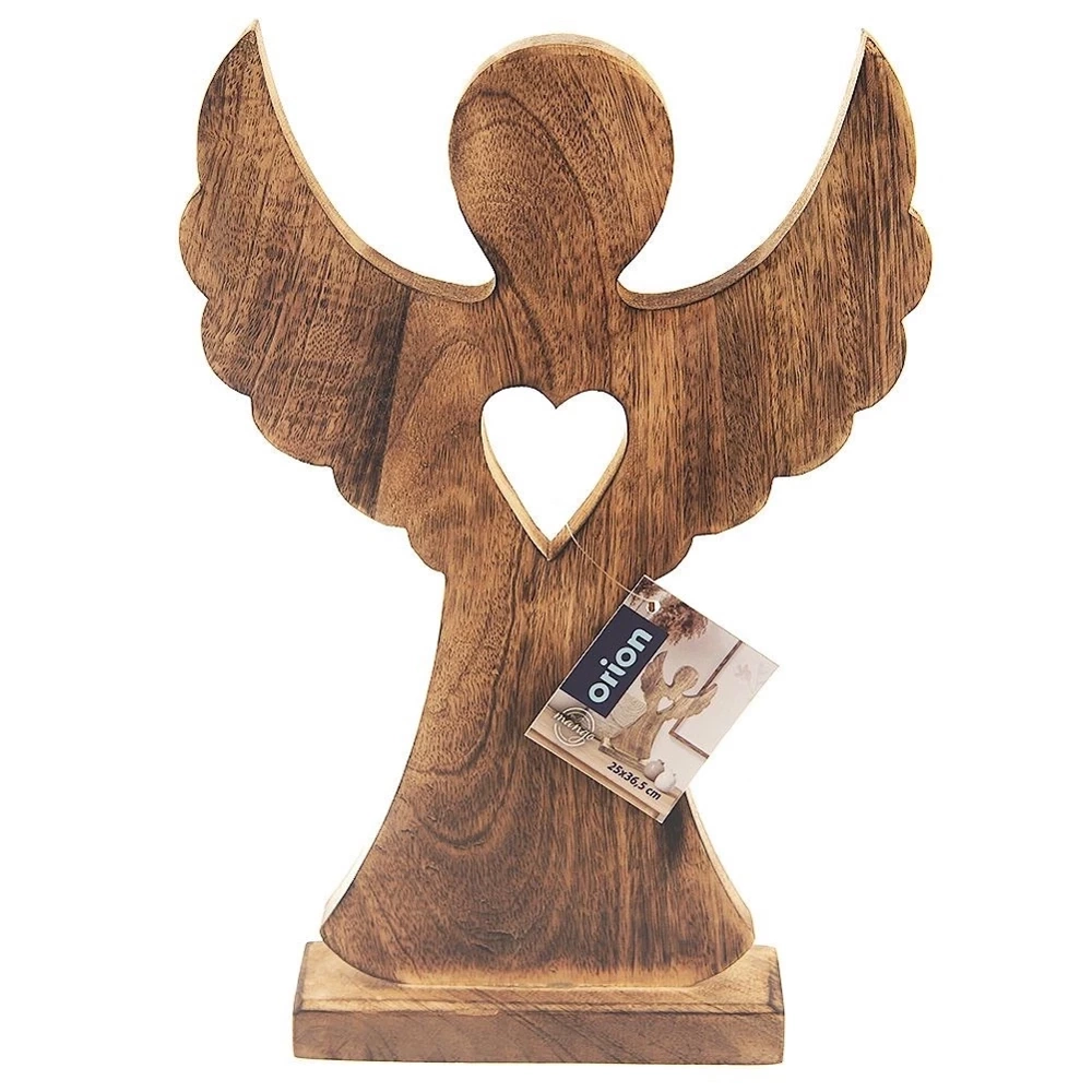 Figurka anioła wykonana z naturalnego drewna mangowca. Prezentuje się bardzo efektownie a serce nadaje jej oryginalnego wyglądu. Figurka będzie wyjątkową dekoracją oraz pomysłem na oryginalny prezent. Idealna na okres zimowo, świąteczny, ale możemy użytkować ją również cały rok. Piękna dekoracja dla każdego, kto uwielbia proste, naturalne dekoracje. Oryginalny produkt czeskiej marki Orion. Wyprodukowano zgodnie z europejskimi standardami.