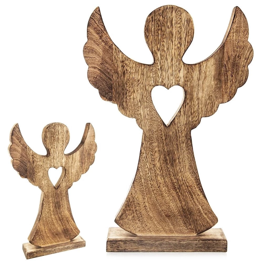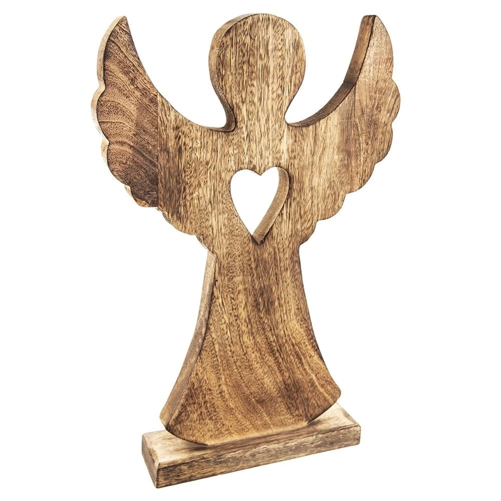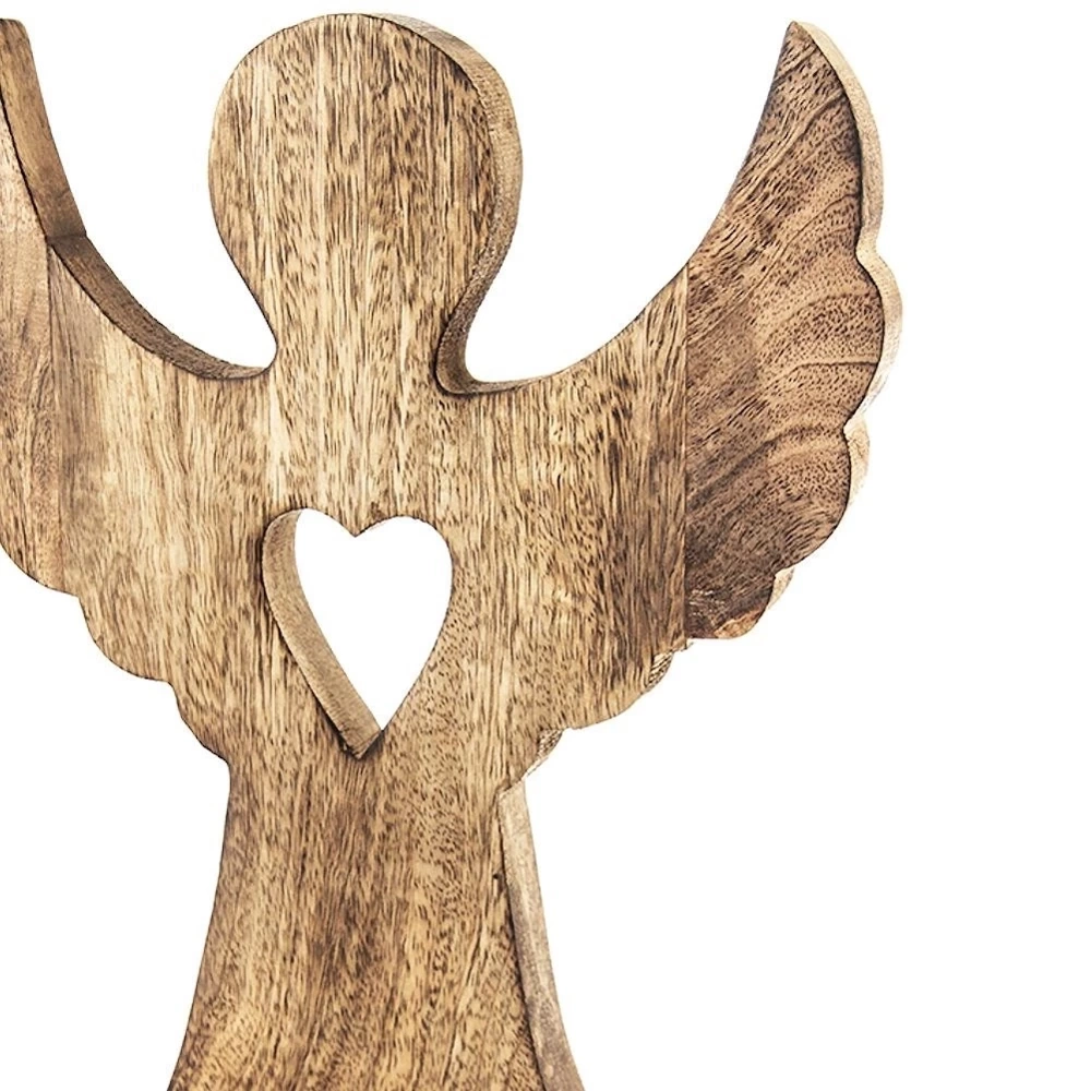 - Figurka anioła wykonana z drewna mangowca. Posiada efektowne serce. Piękna dekoracja dla każdego, kto uwielbia proste, naturalne dekoracje.