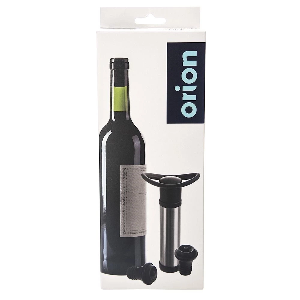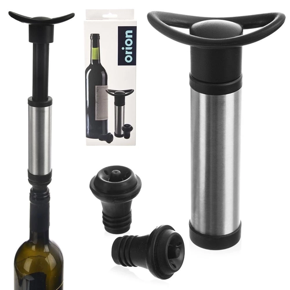 Zestaw składający się z pompki oraz korków do butelek. Pozwoli próżniowo zamknąć butelkę z winem. Zestaw pozwoli nam zachować na dłużej świeżość wina po otwarciu. Jest bardzo prosty w obsłudze. Świetnie sprawdzi się na prezent dla bliskich np. z okazji parapetówki. Oryginalny produkt czeskiej marki Orion. Wyprodukowano zgodnie z europejskimi standardami.