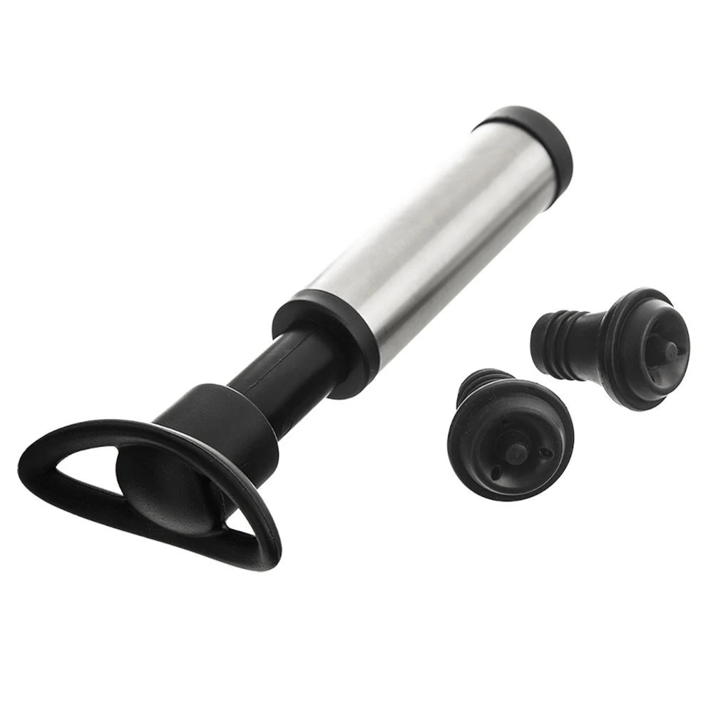 - Pompka próżniowa do wina wraz z dwoma korkami do butelek. Zestaw ten pozwoli nam zachować świeżość otwartego wina na dłużej.