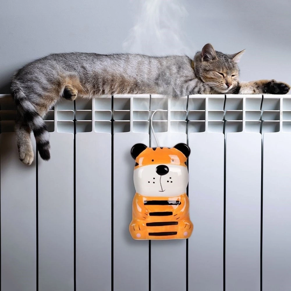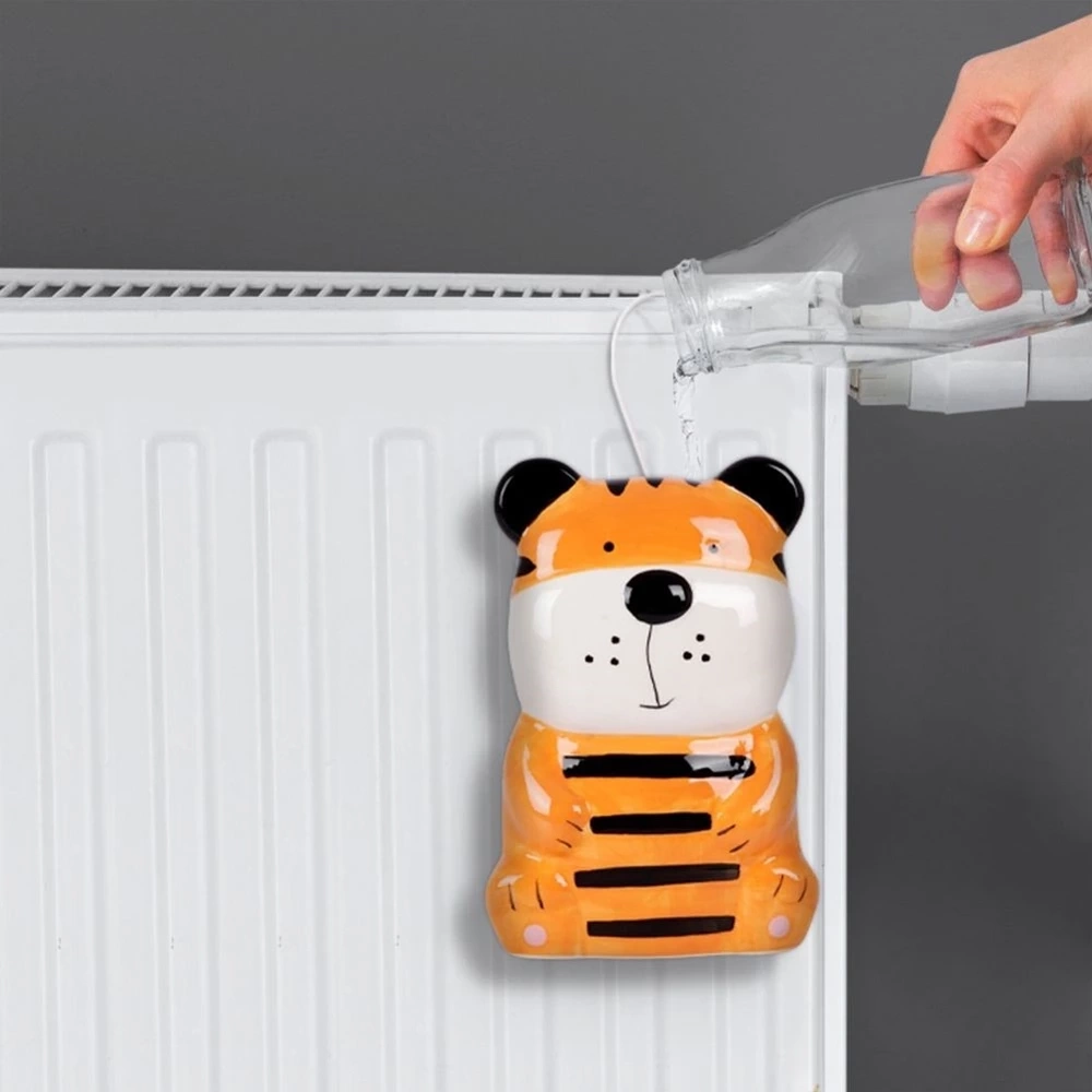 - Ceramiczny nawilżacz powietrza w kształcie uroczego zwierzaka - tygryska. Zawieszany za pomocą haczyka na kaloryferze. Idealny do pokoju dziecięcego.