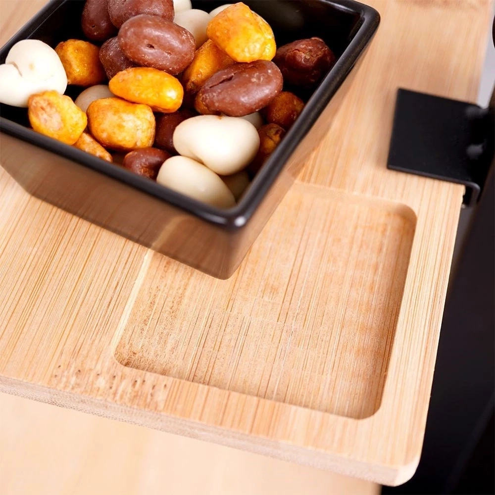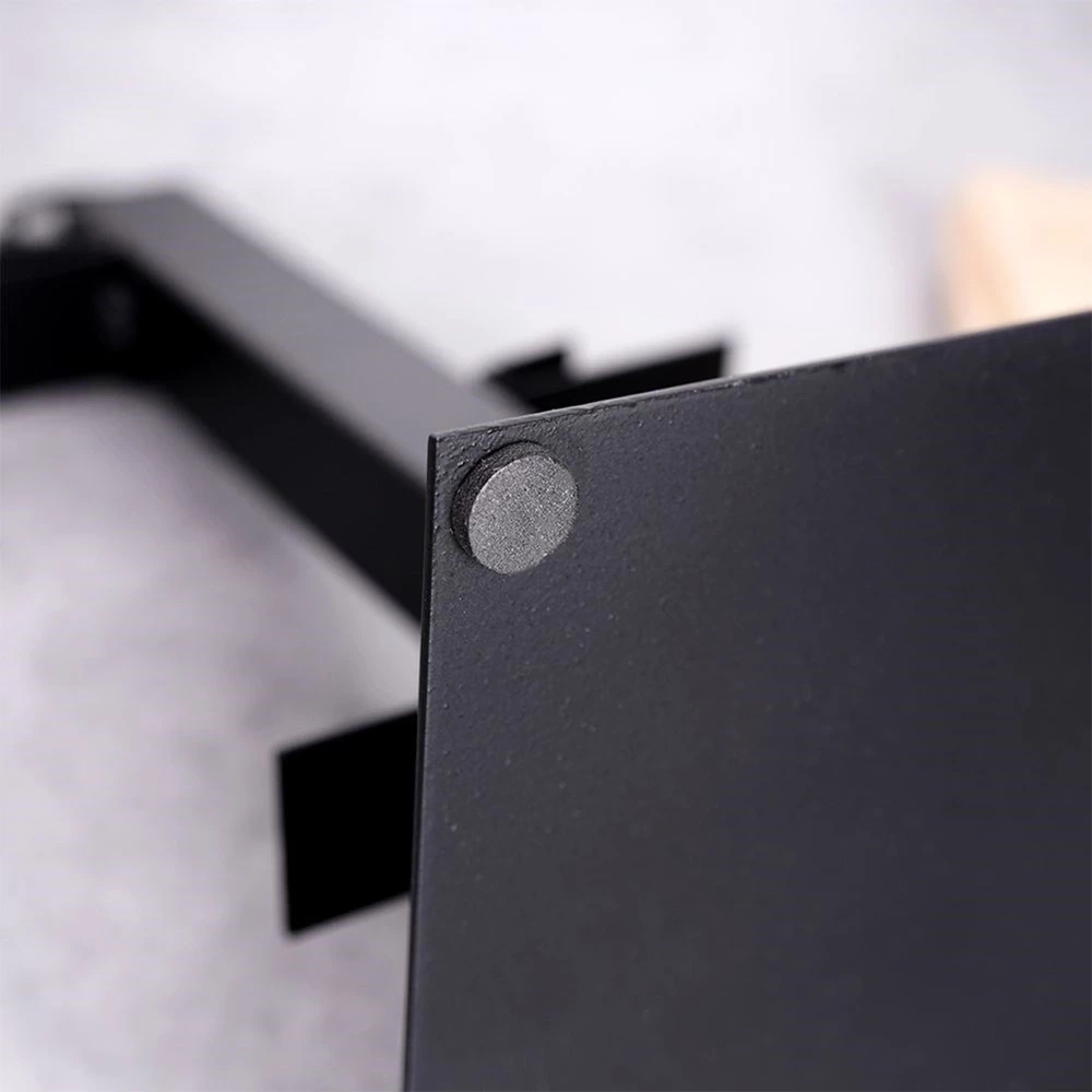 - SOLIDNA - Konstrukcja została wykonana z metalu w kolorze czarnym. Patery zostały wykonane z drewna bambusowego a miseczka z ceramiki w kolorze czarnym. Usadowiona na stabilnej konstrukcji, podstawa w kształcie kwadratu o wymiarach 13 x 13 cm.