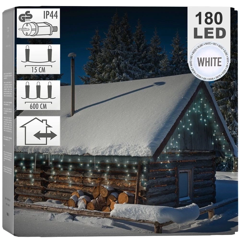 Kurtyna świetlna z 180 lampkami LED. Do zastosowania na zewnątrz oraz wewnątrz pomieszczeń. Bardzo popularna ozdoba domów i ogrodów w okresie świątecznym. Lampki nadadzą wyjątkowego klimatu. Z ich pomocą stworzysz niepowtarzalną, świąteczną atmosferę. Lampki posiadają certyfikat CE. Brak możliwości połączenia kilku kurtyn w jedną całość. Wyprodukowano zgodnie z europejskimi standardami.