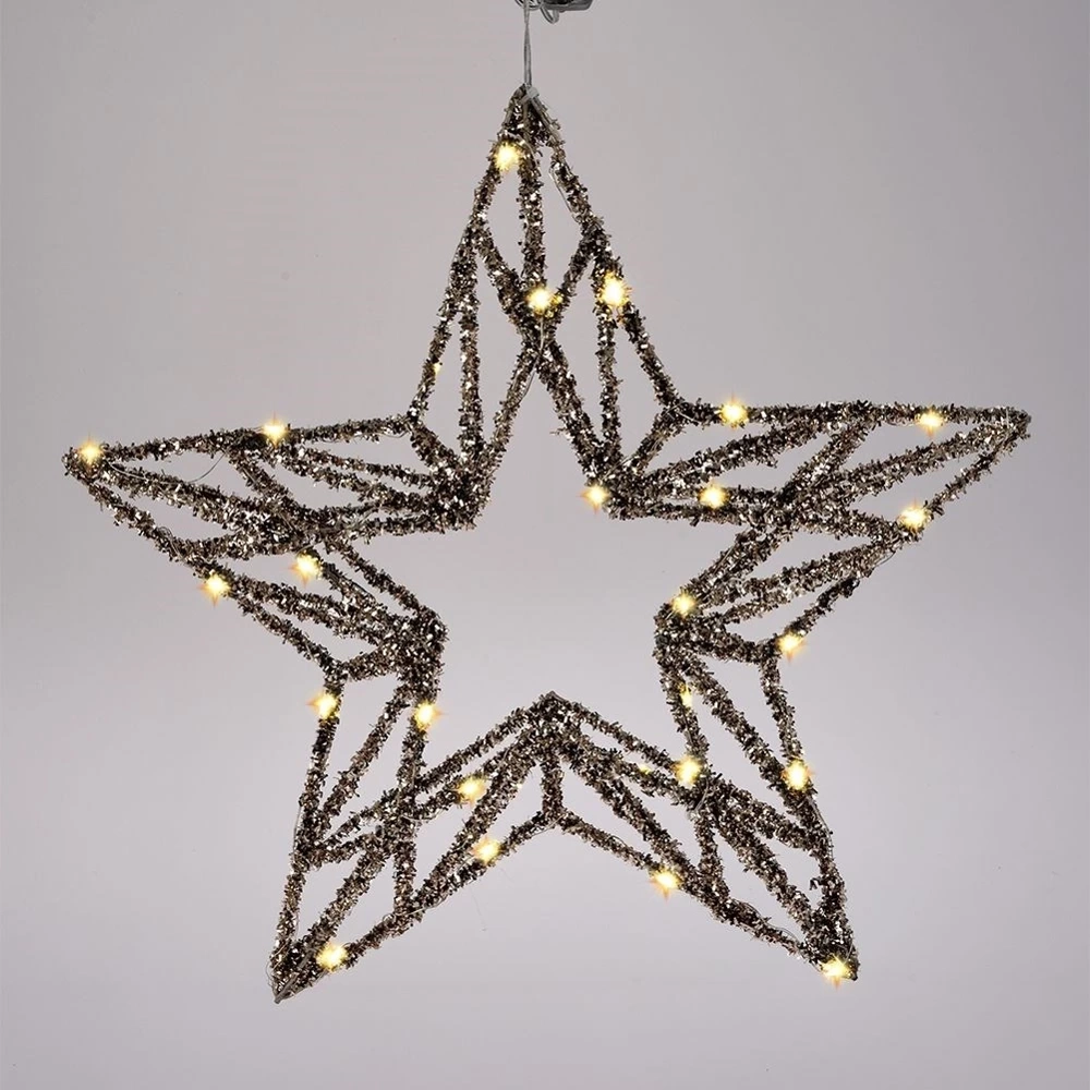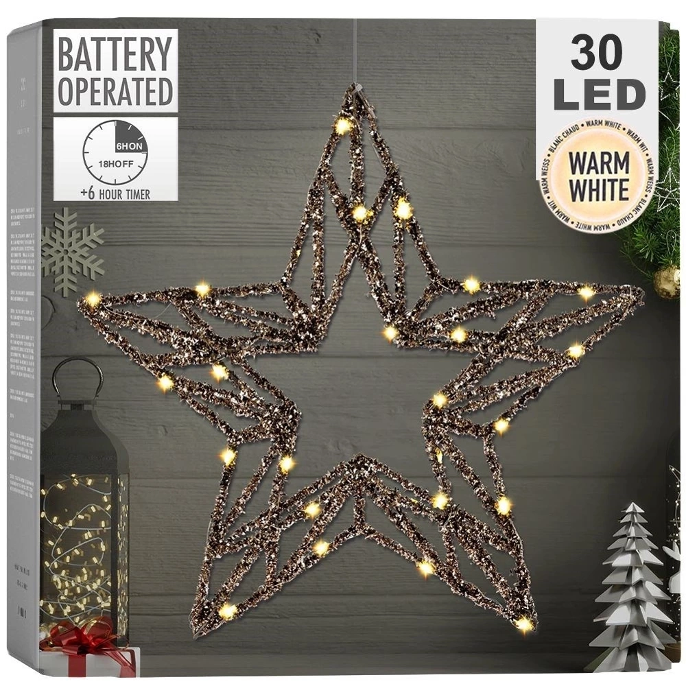 - Gwiazda świecąca 30 diodami LED, zasilana na baterie. Niezwykle efektowna ozdoba na czas Świąt Bożego Narodzenia. Gwiazda jest w kolorze złotym.
