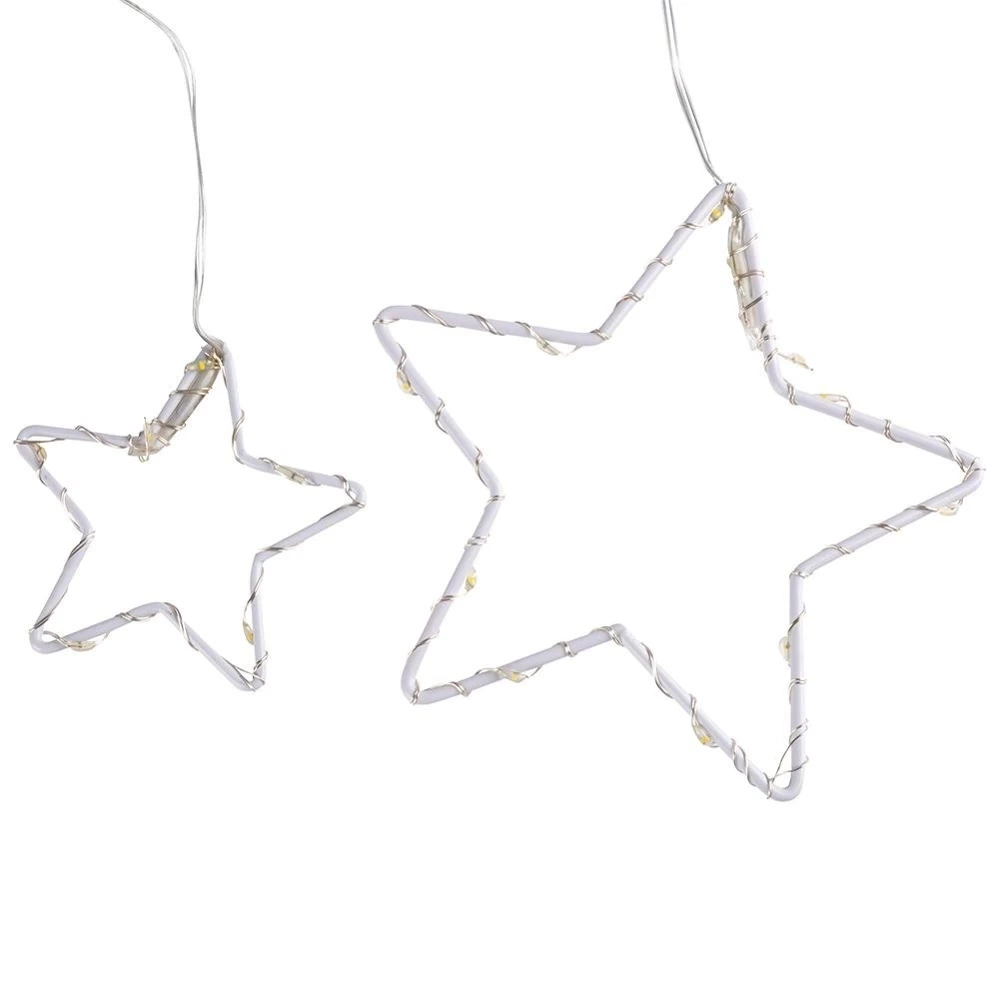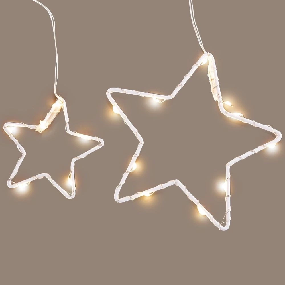 - FUNKCJONALNA - Posiada funkcję timera, co pozwoli na automatyczne wyłączenie po 6 godzinach i automatyczne włączenie po 18 godzinach. Na girlandzie znajduje się pięć gwiazdek (2 mniejsze po 6 LED i 3 większe po 11 LED). Gwiazdki są zawieszone na dwóch wysokościach 24 cm i 30 cm.