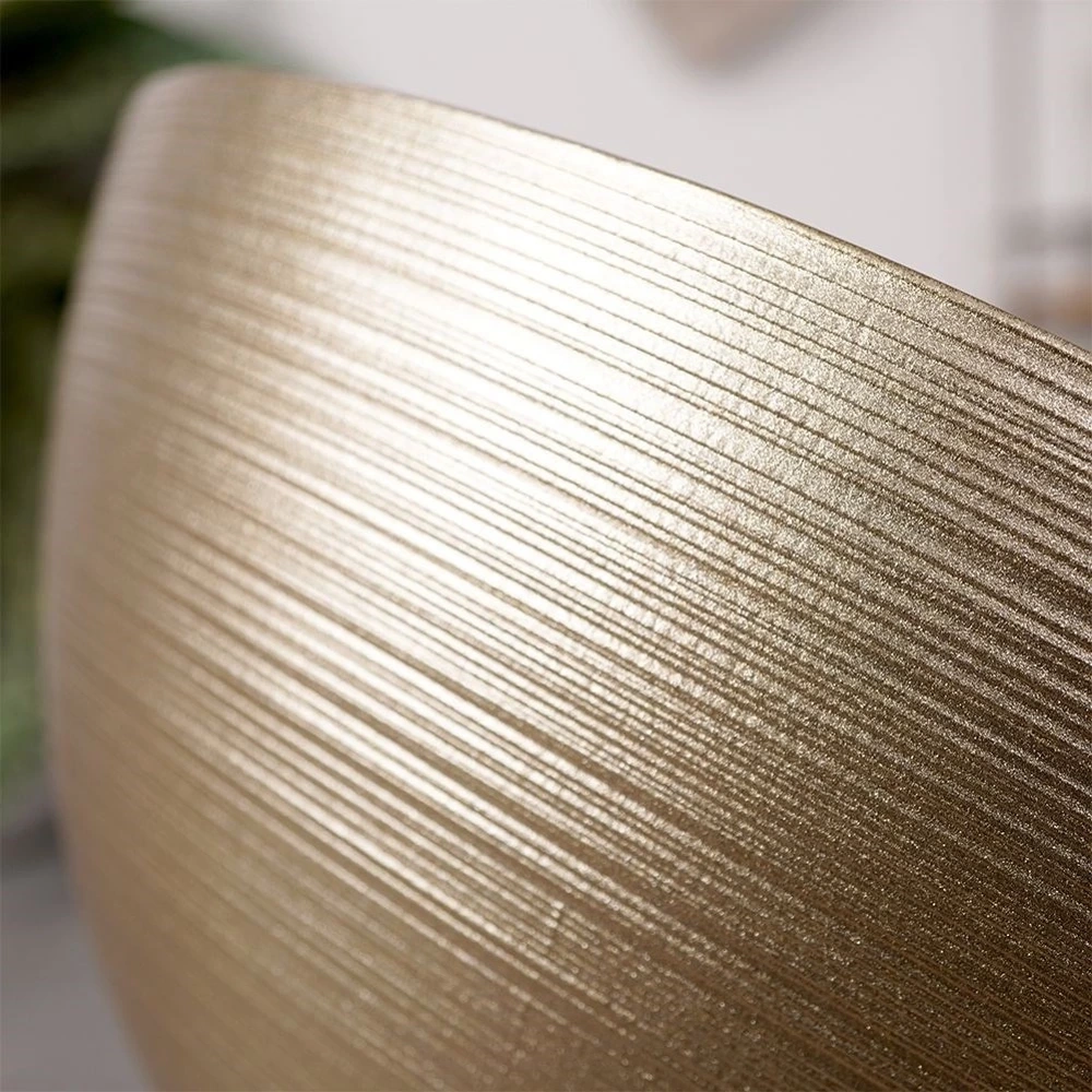 - SZKLANA - Miska wykonana ze szkła malowanego na złoty kolor. Zewnętrzna część miski jest matowa i ma strukturę delikatnych, poziomych prążków, które tworzą efektowną całość.