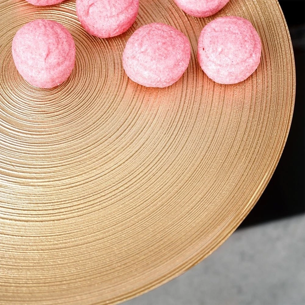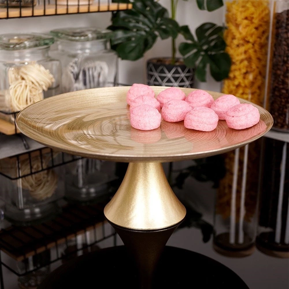- Patera na nóżce o średnicy 28 cm. Wykonana z wysokiej jakości szkła malowanego na złoty kolor. Idealna do ciast, tortów, muffinek, owoców. Bardzo efektowna.