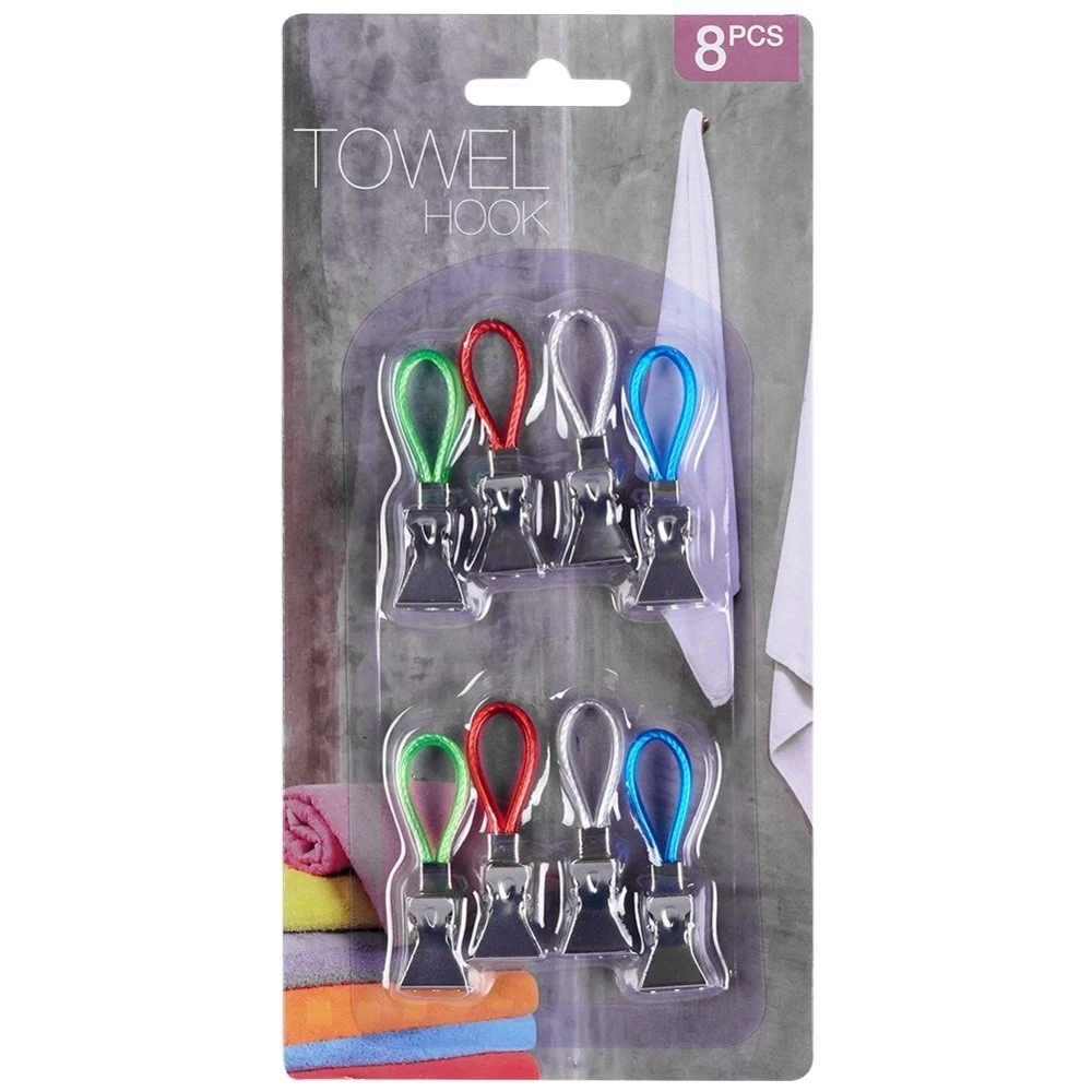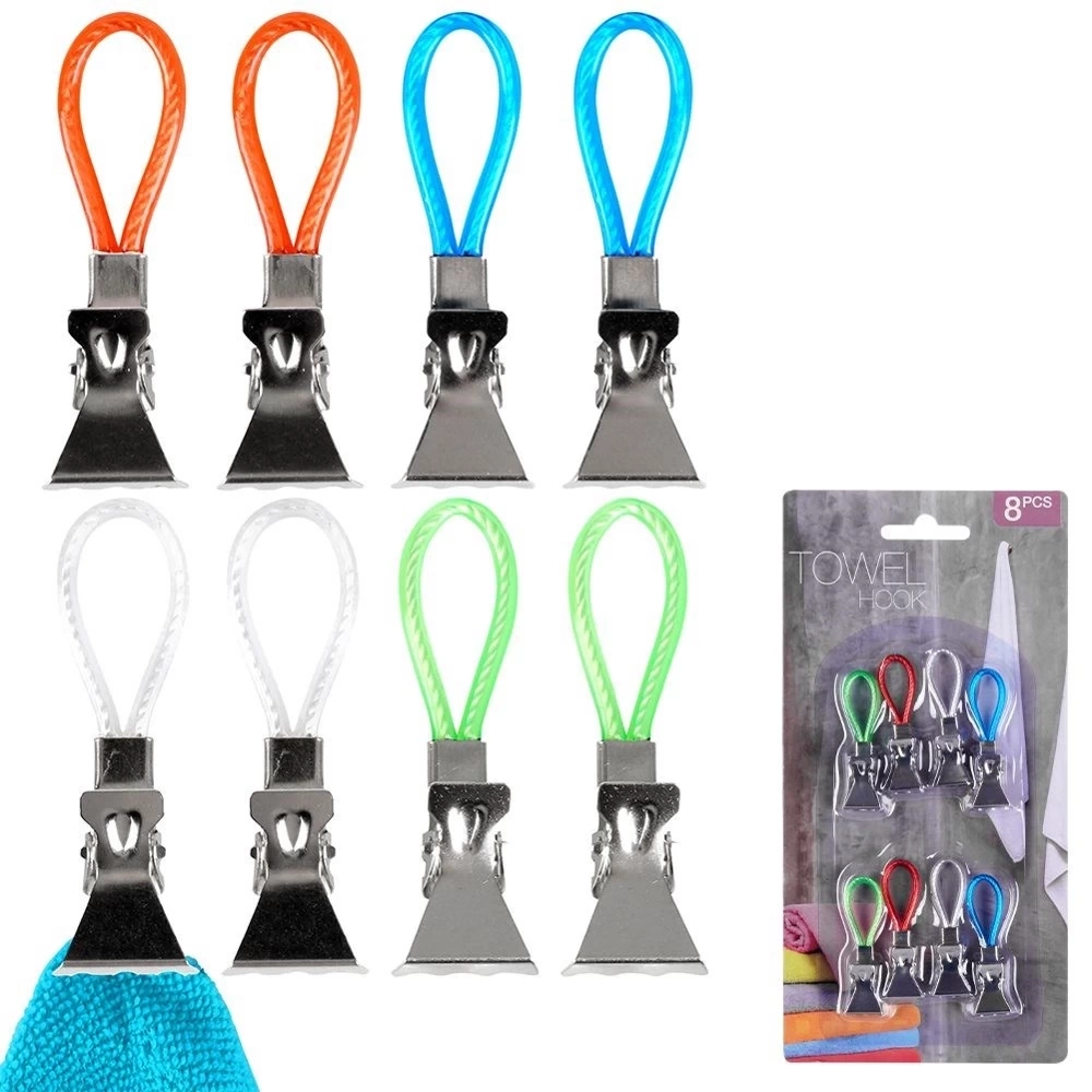 - Zestaw 8 szt. praktycznych klipsów do powieszenia ręczników lub ścierek. Haczyki sprawdzą się zarówno w łazience jak i kuchni.