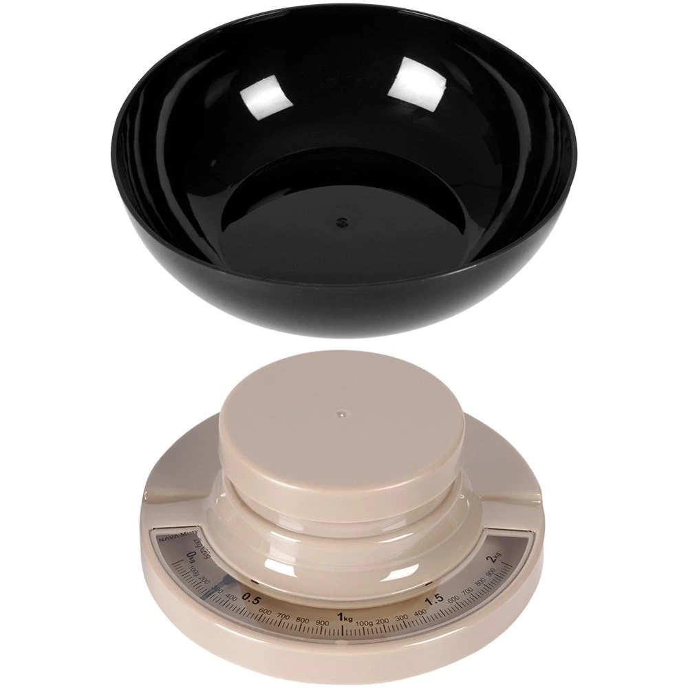 - Mechaniczna waga kuchenna, która nie wymaga baterii do jej użytkowania. Posiada zdejmowaną miskę o pojemności 850 ml. Maksymalne obciążenie wagi to 2 kg.