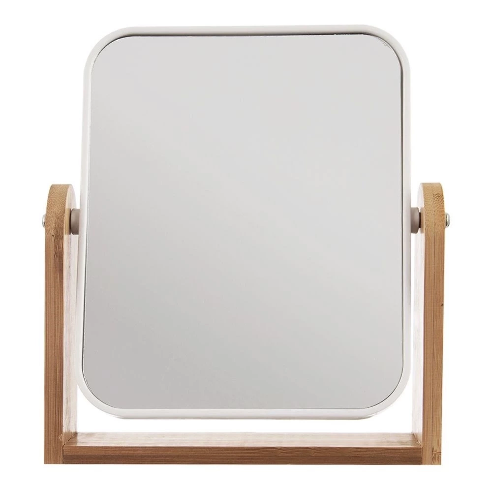 - Lusterko dwustronne na bambusowym stojaku. Jedna strona to klasyczne lustro z drugiej powiększony obraz. Idealne do wykonywania makijażu czy zabiegów kosmetycznych.