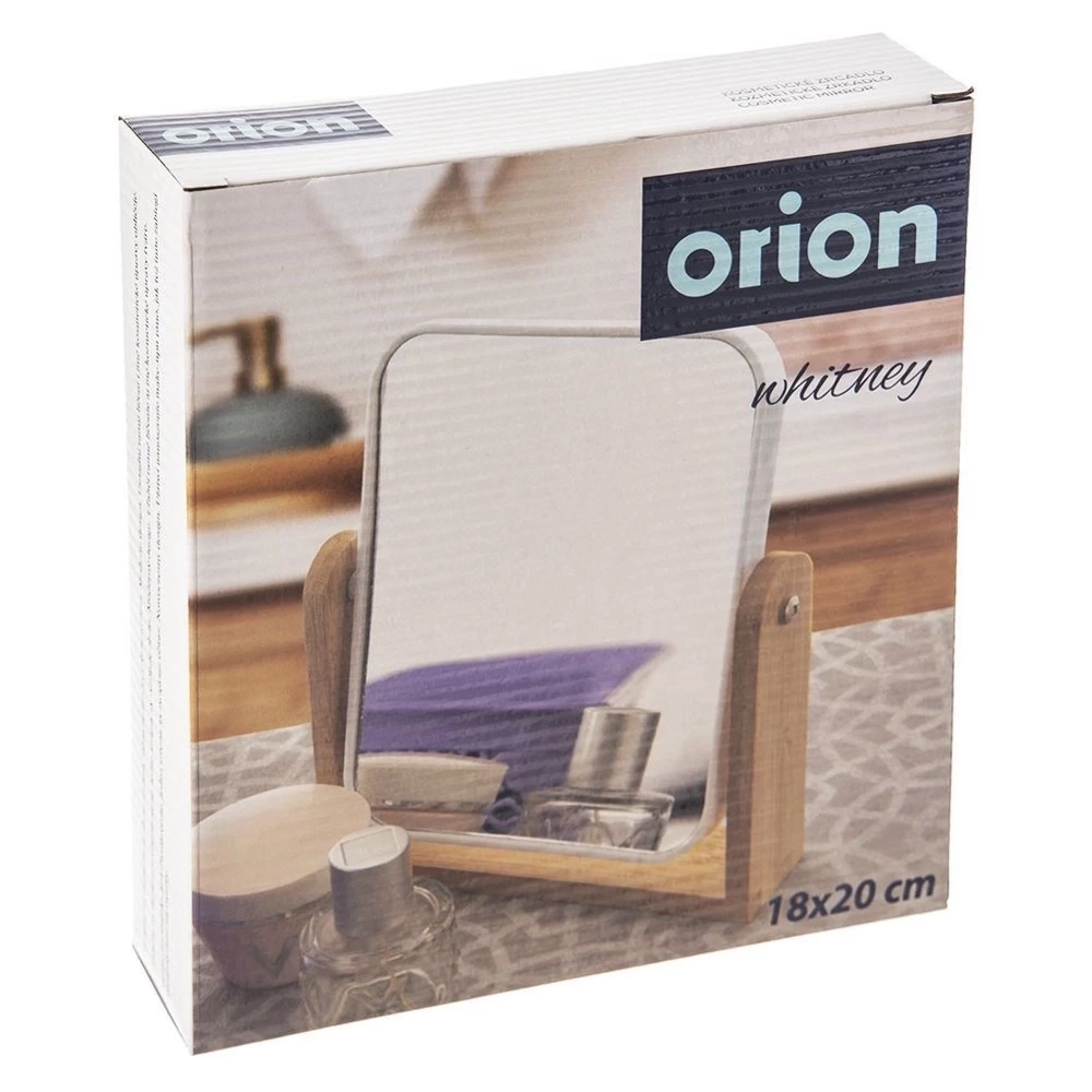 Dwustronne lusterko na stojaku. Lusterko możemy postawić na blacie lub stole, dzięki czemu będziemy mogli wygodnie wykonywać przy nim makijaż lub proste zabiegi kosmetyczne. Jest świetnym pomysłem na prezent dla każdej kobiety. Modne obramowanie w kolorze białym sprawi, że idealnie pasuje do każdego wnętrza. Oryginalny produkt czeskiej marki Orion. Wyprodukowano zgodnie z europejskimi standardami.