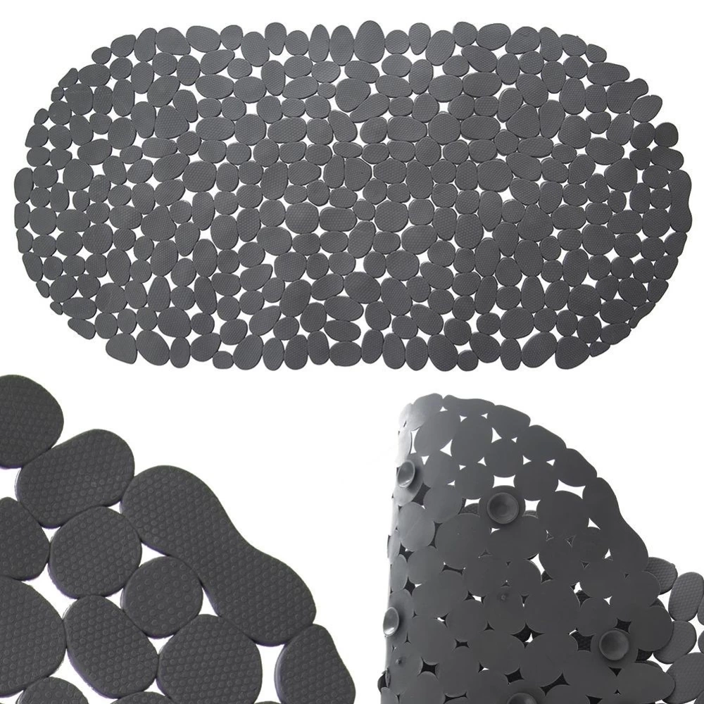 - ANTYPOŚLIZGOWA - Łazienkowa mata antypoślizgowa w owalnym kształcie o wymiarach 68 x 34 cm. Sprawdzi się pod prysznicem, w brodziku lub wannie. Mocno przylega za pomocą przyssawek.