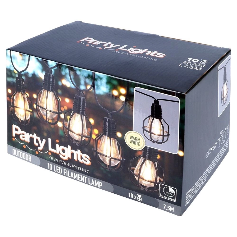 - Girlanda ogrodowa posiada 10 lampek wykonanych z przezroczystego tworzywa. W każdej żarówce 11 diod LED o ciepłej barwie. Do zastosowania na zewnątrz pomieszczeń.