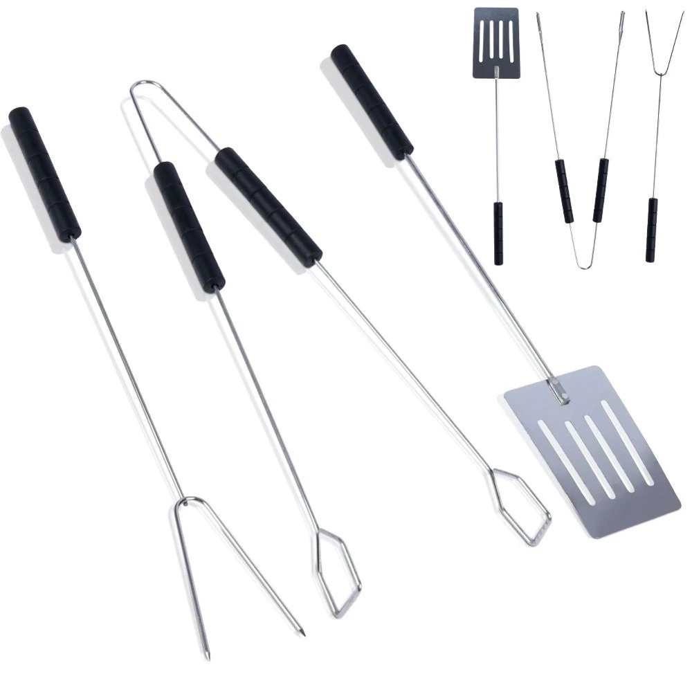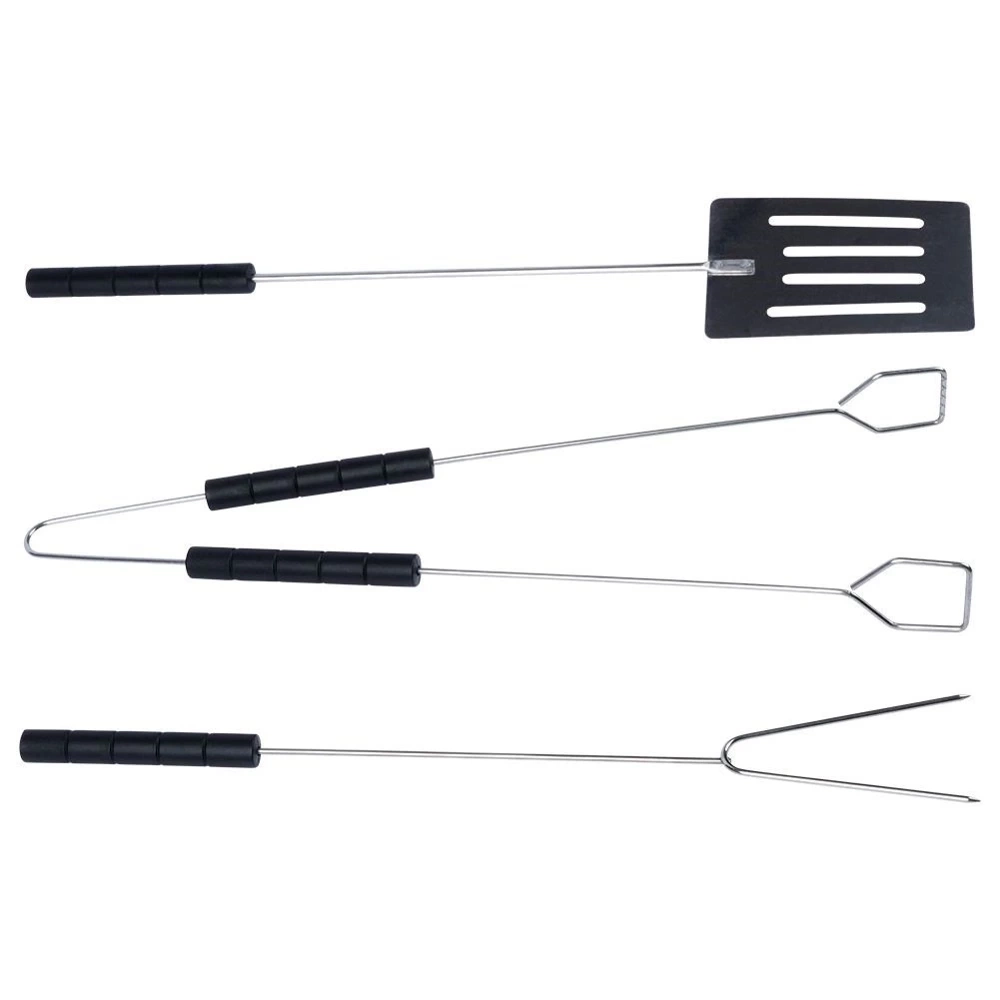 - Komplet trzech podstawowych przyborów niezbędnych podczas grillowania. Narzędzia wykonane ze stali chromowanej a uchwyty z tworzywa.