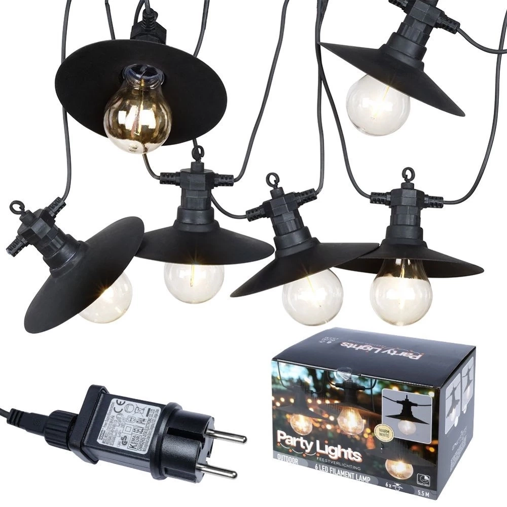 - ŻARÓWKI LED - Girlanda obejmuje 6 przezroczystych żarówek typu LED wykonanych z tworzywa dodatkowo posiada czarny klosz. W każdej żarówce umieszczono 1 żarnik LED o ciepłej barwie. Klosz ma średnicę 15 cm, żarówka ma średnicę 6 cm i długość 7 cm.