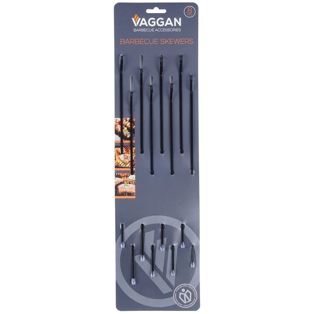 Zestaw ośmiu stalowych szpikulców. Łatwe w użytkowaniu, dzięki zakończeniu w postaci pętelki, potrawy nie będą zsuwać się ze szpikulca. Łatwe w czyszczeniu i wygodne w użytkowaniu. Nie zaleca się mycia w zmywarce do naczyń. Szpikulce są wielokrotnego użytku, dzięki czemu są świetną alternatywą dla jednorazowych patyczków. Oryginalny produkt holenderskiej marki Vaggan. Wyprodukowano zgodnie z europejskimi standardami.