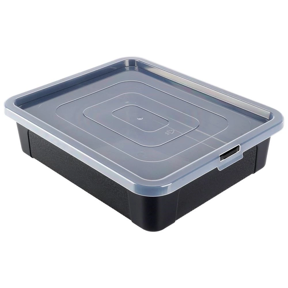 - Prostokątny pojemnik na ciasto. Wykonany z najwyższej jakości tworzywa: spód w kolorze czarnym a pokrywa w przezroczystym kolorze.
