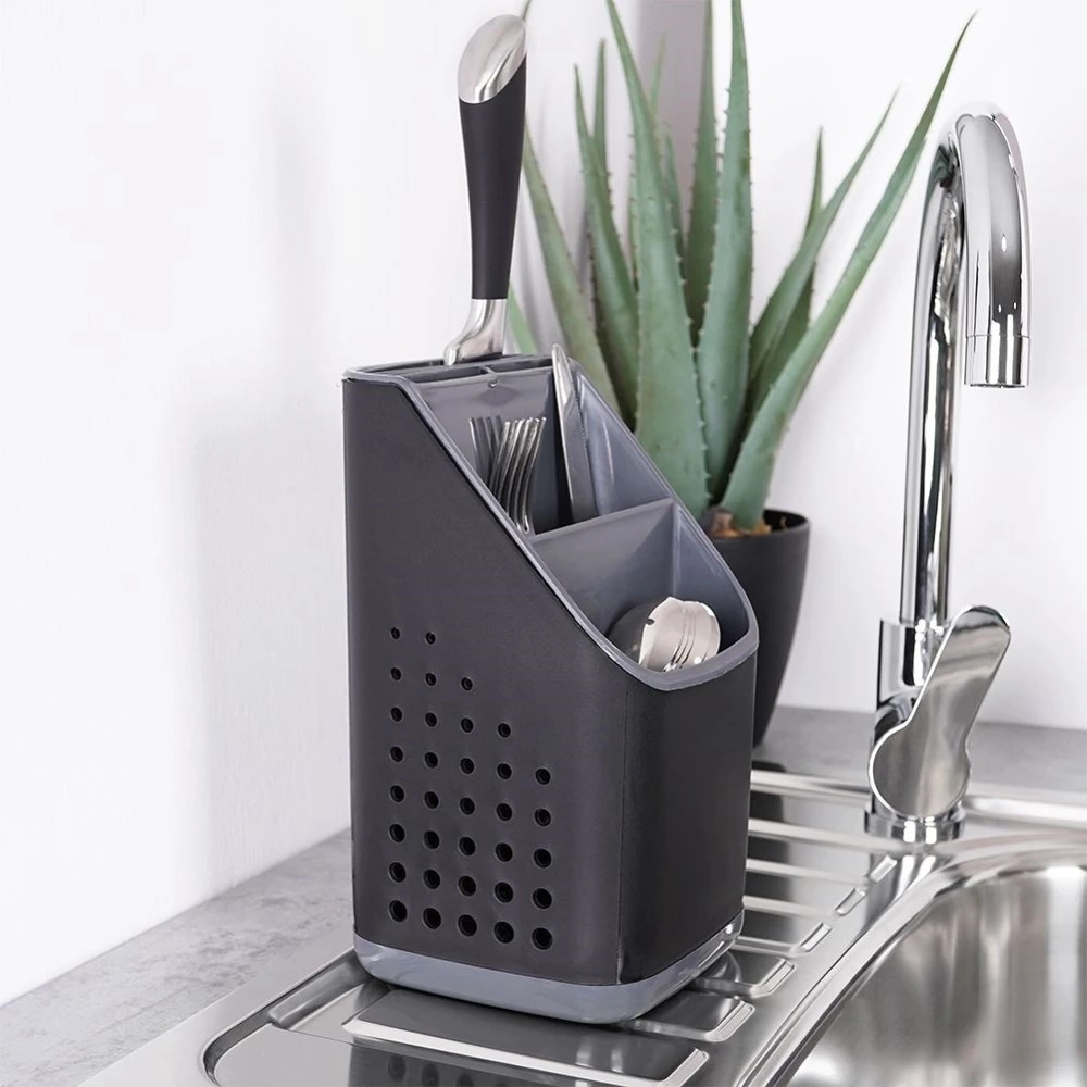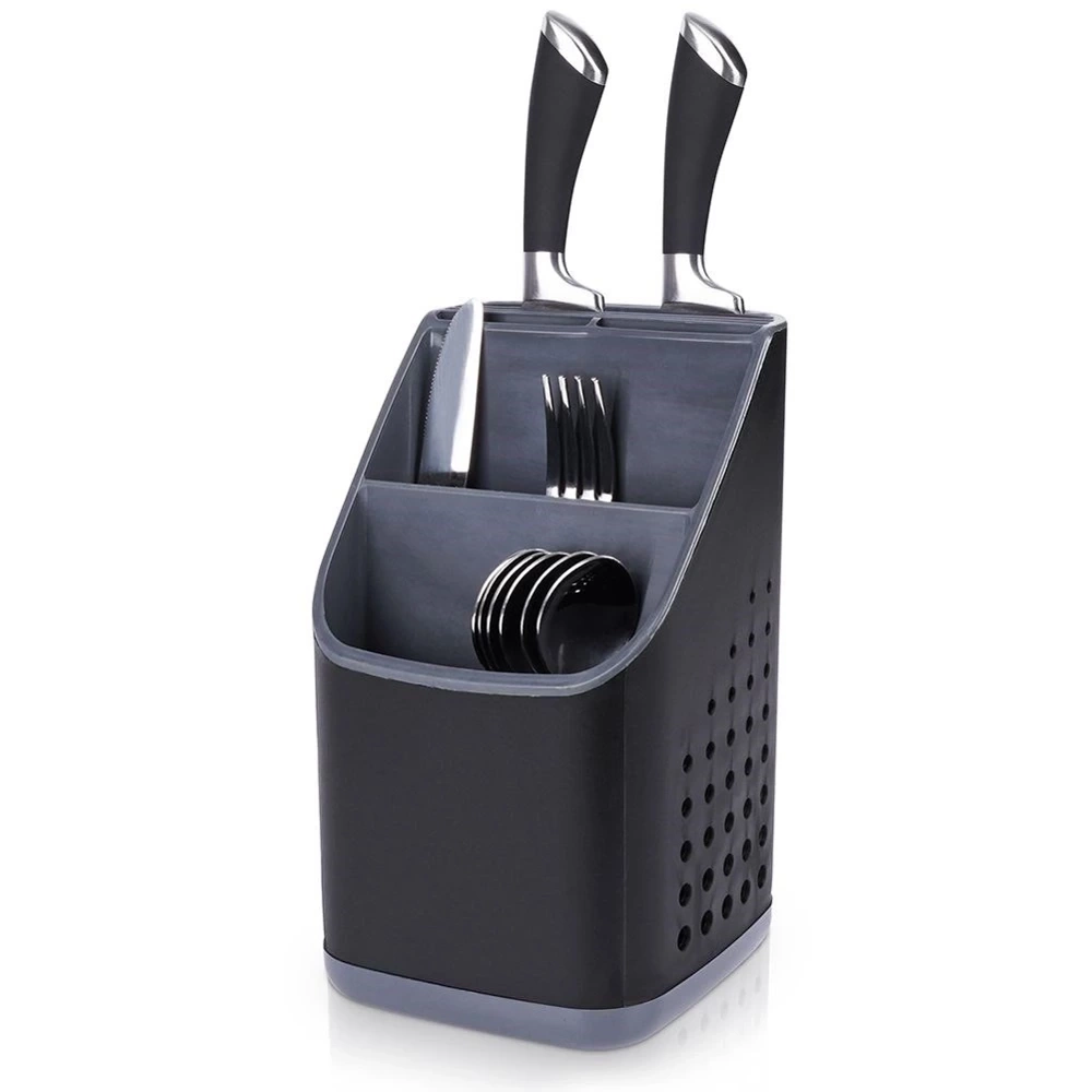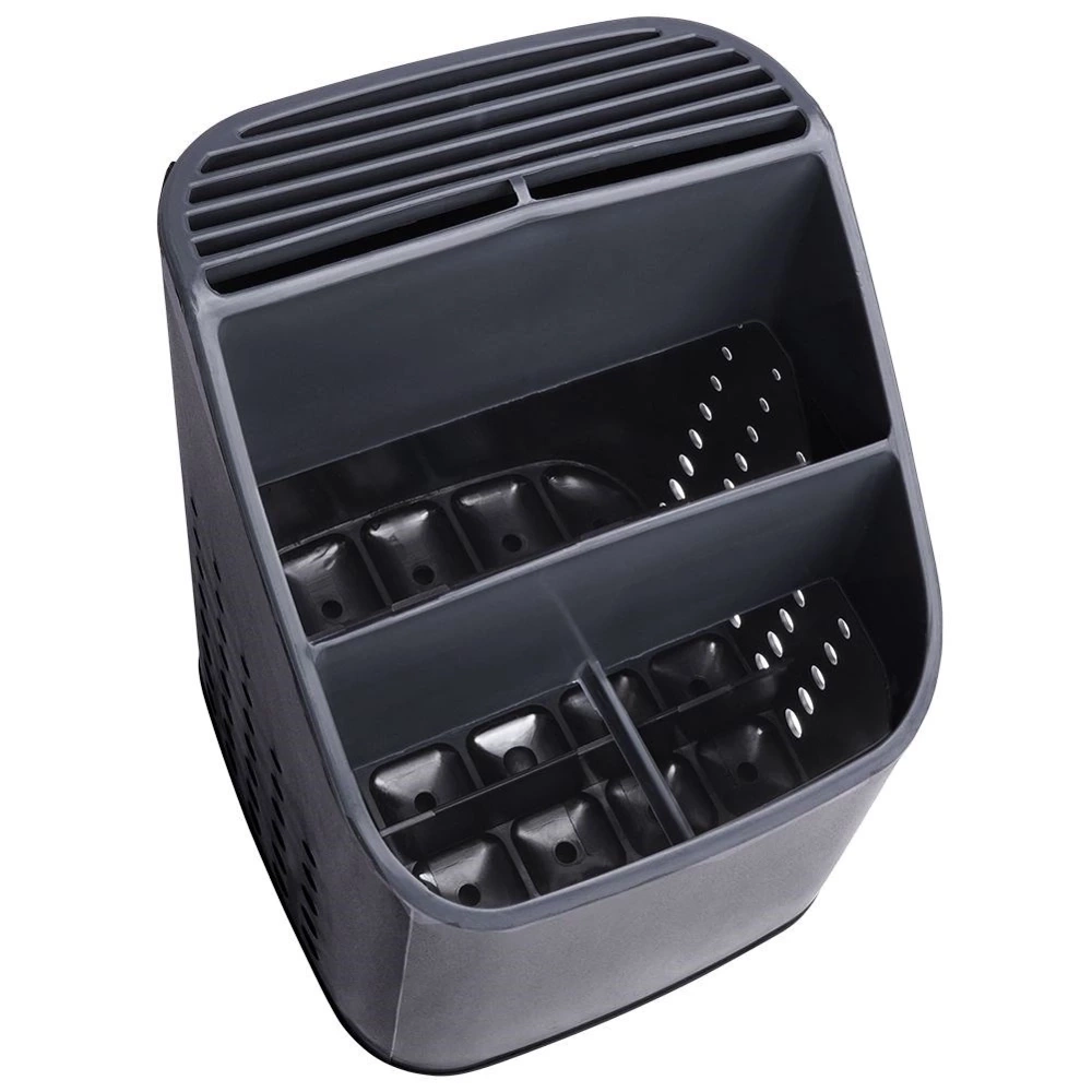 - Pojemny i niezwykle praktyczny pojemnik na sztućce, przybory i noże kuchenne. Może służyć jako organizer lub jako ociekacz na umyte przybory kuchenne.