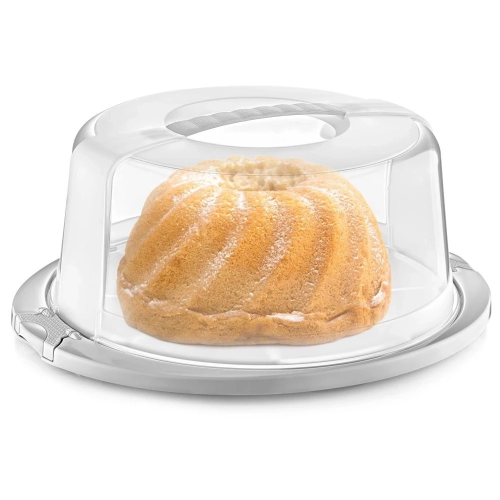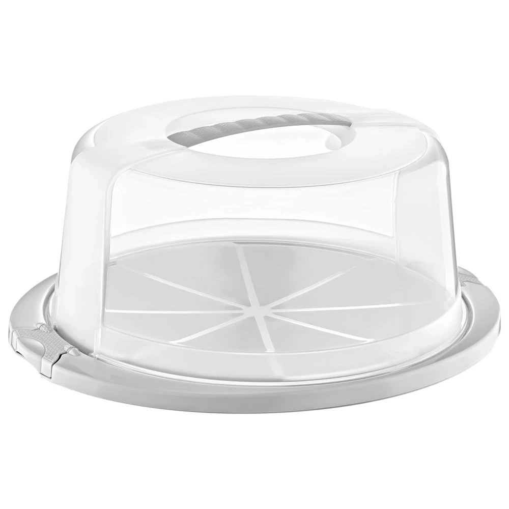- PRZYDATNY - Pojemnik do przenoszenia i przechowywania ciast i tortów w okrągłym kształcie. Pojemnik składa się z podstawki oraz pokrywki z uchwytem. Pojemnik z pokrywą o wymiarach: 39 x 34 x 15,5 cm. Średnica pokrywy wynosi 30 cm.