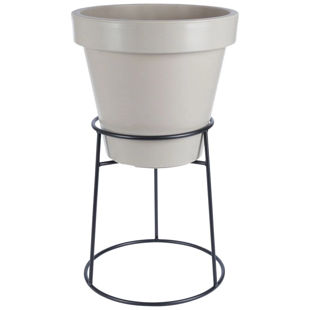 - Stojak na doniczkę wykonany ze stali w czarnym kolorze. Możemy użytkować go dwustronnie, odpowiedni do doniczki o średnicy 35 cm lub 28 cm.
