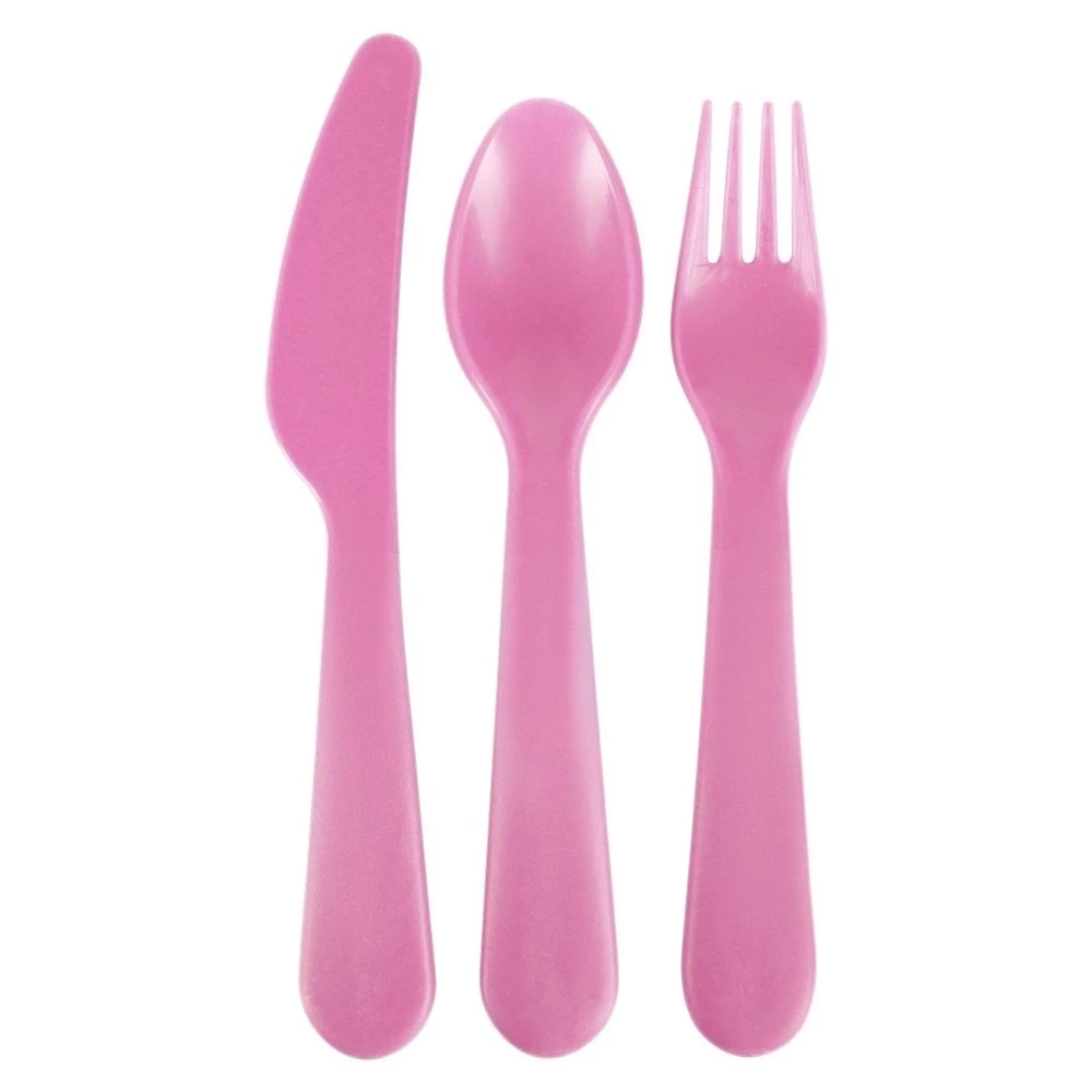 - Zestaw wielorazowych sztućców składający się z 18 el. Sztućce wykonane z tworzywa w sześciu kolorach. W zestawie widelec, łyżka oraz nóż. Odpowiednie dla dzieci.