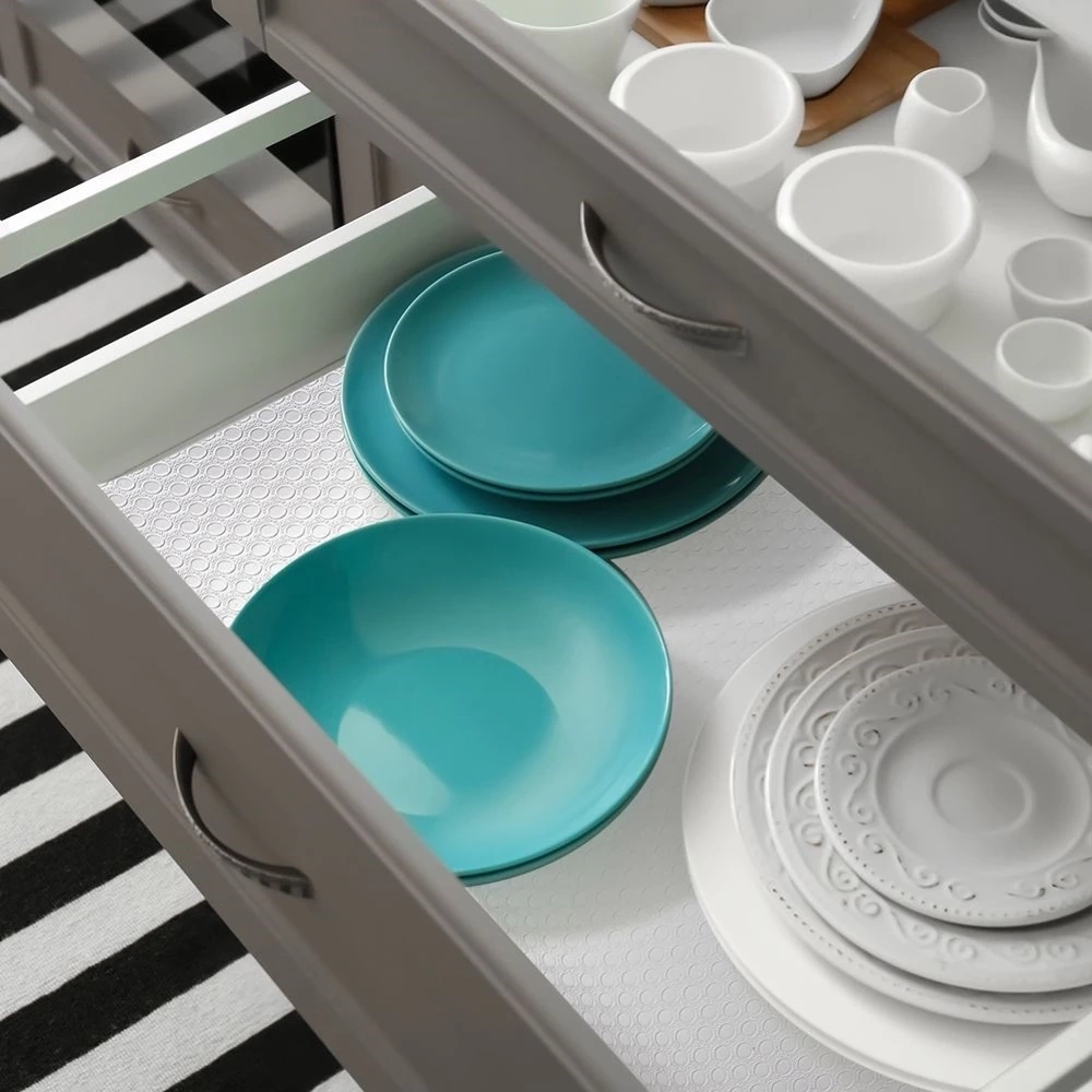 - UNIWERSALNA - Może pełnić funkcję maty ochronnej do szuflady. Zabezpieczając szuflady przed uszkodzeniem oraz zapewni antypoślizgowe podłoże dla przechowywanych rzeczy. Mata posiada uniwersalne zastosowanie. Wykorzystamy ją również jako podkład pod dywaniki i dywany. Przydatna również w przyczepach kempingowych, garażu czy warsztacie. Mata może pełnić także rolę podkładki na stół pod talerze i sztućce.
