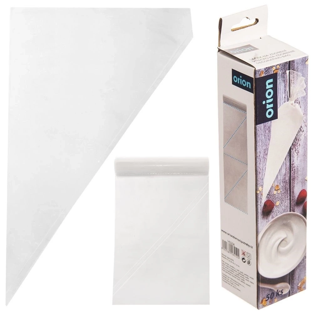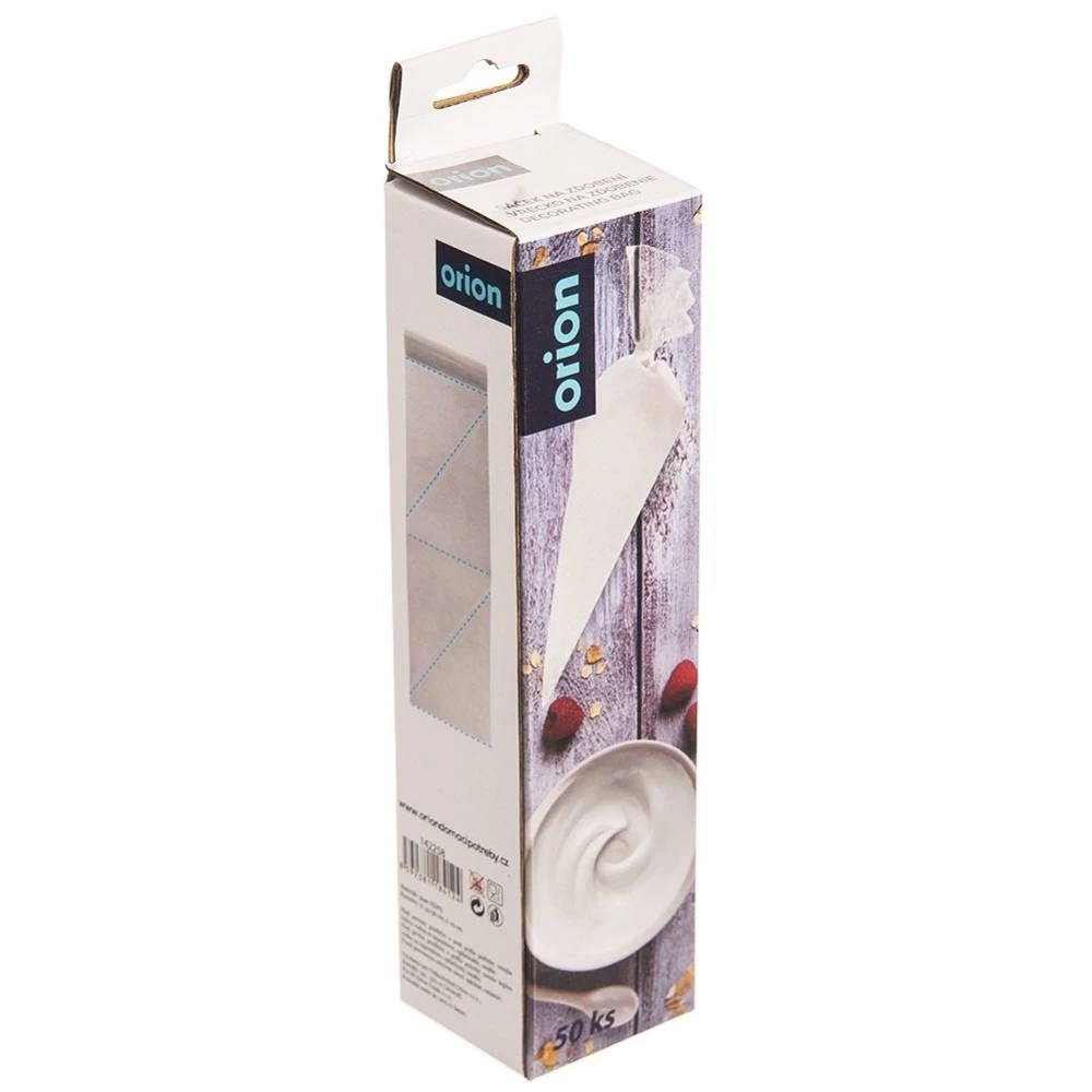 Zestaw 50 sztuk rękawa cukierniczego na rolce. Z jego pomocą w łatwy sposób nałożymy masę do kremów i ciast. Przyda się do formowania bez oraz nakładania past i farszów, ale również do nadziewania, zdobienia i lukrowania ciastek. Niezwykle prosty w obsłudze. Niezbędny w każdej kuchni. Łatwy w użytkowaniu i czyszczeniu. Oryginalny produkt czeskiej marki Orion. Wyprodukowano zgodnie z europejskimi standardami.